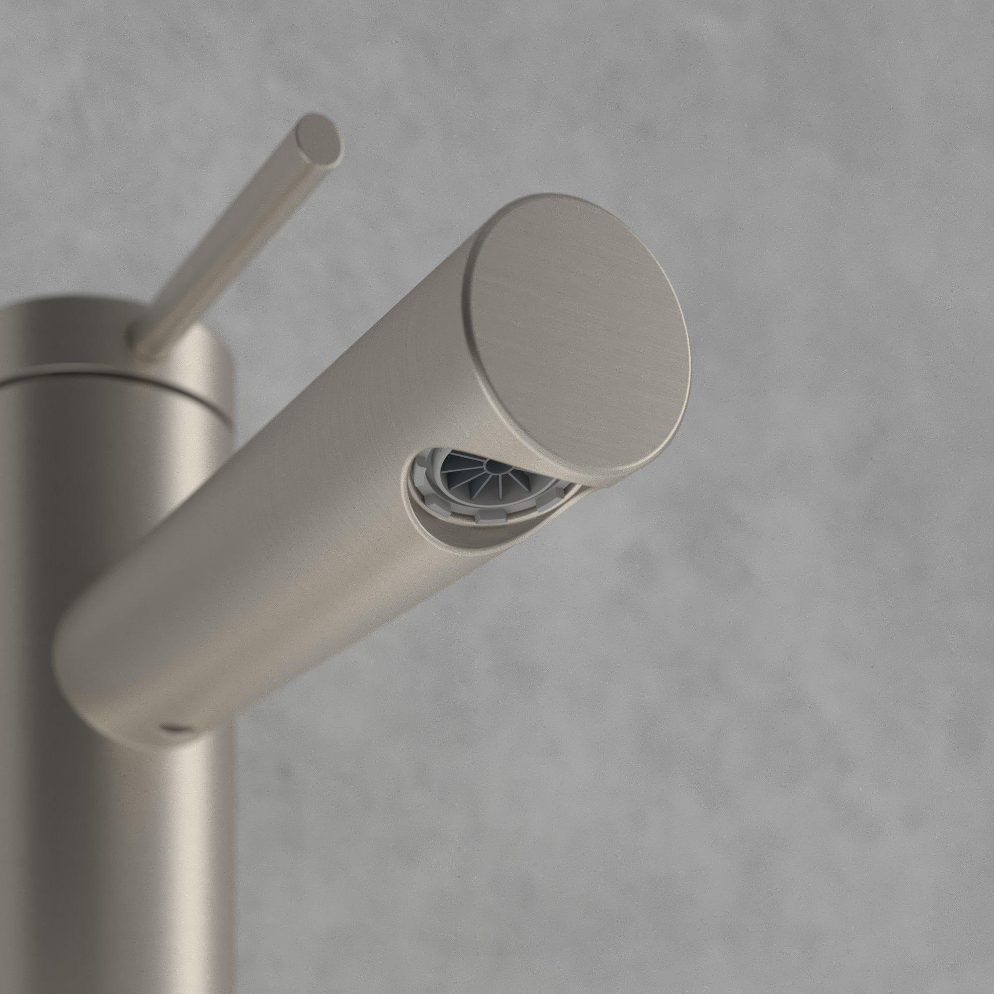 Ce mitigeur de lavabo élégant est un excellent choix si vous souhaitez donner à votre salle de bains une apparence calme et haut de gamme sans faire de compromis sur le confort. Grâce aux formes rondes raffinées et à la finition nickel brossé mat, ce modèle s’intègre sans effort dans les salles de bains modernes, minimalistes et même dans les salles de bains classiques intemporelles. Son design compact le rend idéal aussi bien pour les petits lavabos dans les toilettes que pour les grands lavabos dans la salle de bains principale ou familiale. Grâce à la commande souple, vous réglez le débit et la température de l’eau d’une seule main, ce qui rend l’utilisation quotidienne non seulement confortable, mais aussi sûre et efficace. Si vous cherchez un robinet qui apporte juste cette touche de sensation d’hôtel tout en restant pratique et durable à l’usage, alors c’est un choix particulièrement judicieux.