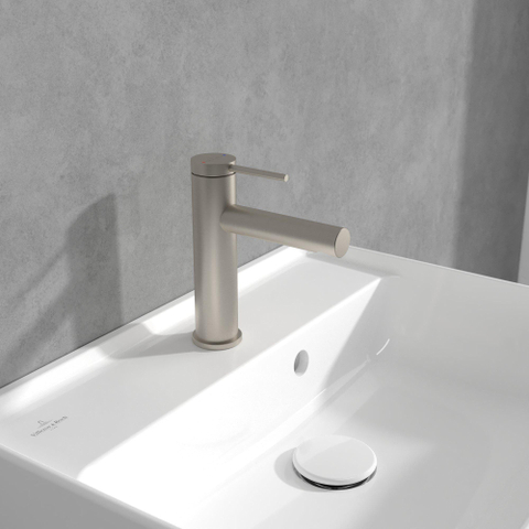 La finition en nickel brossé mat (aspect inox) confère une apparence calme et luxueuse et se marie à merveille avec les lavabos blancs, la pierre naturelle, le béton ciré ou les tons bois. La brillance douce est moins sensible aux traces de doigts et aux éclaboussures d’eau que le chrome brillant, ce qui permet à votre lavabo de paraître soigné plus longtemps. Les formes rondes et organiques s’accordent parfaitement avec différents styles de salle de bains, du scandinave et moderne au style hôtel chic. Grâce à son apparence universelle, ce robinet se combine très bien avec différents lavabos à poser et vasques encastrées, et forme un ensemble harmonieux avec les autres éléments de la même ligne de design. Vous créez ainsi facilement un style cohérent dans toute la salle de bains.