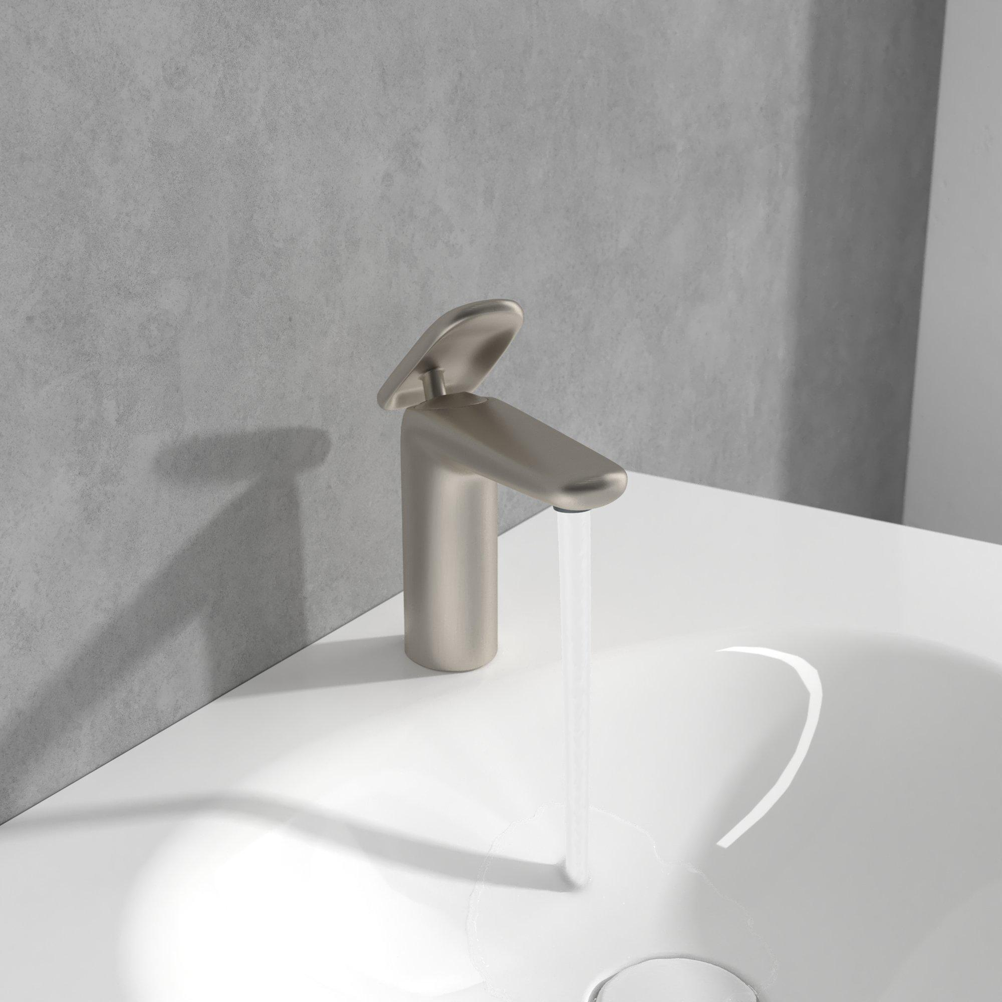 - Mitigeur de lavabo élégant en nickel brossé mat (aspect inox) pour une apparence chaleureuse et moderne.