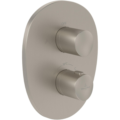 Villeroy & Boch Antao Mitigeur thermostatique encastré avec vanne d'arrêt deux voies - Nickel brossé mat (inox)