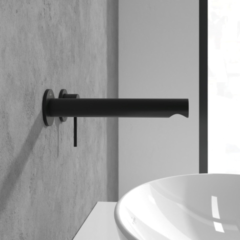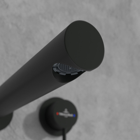 - Mitigeur de lavabo monocommande moderne en noir mat pour une allure luxueuse et design.