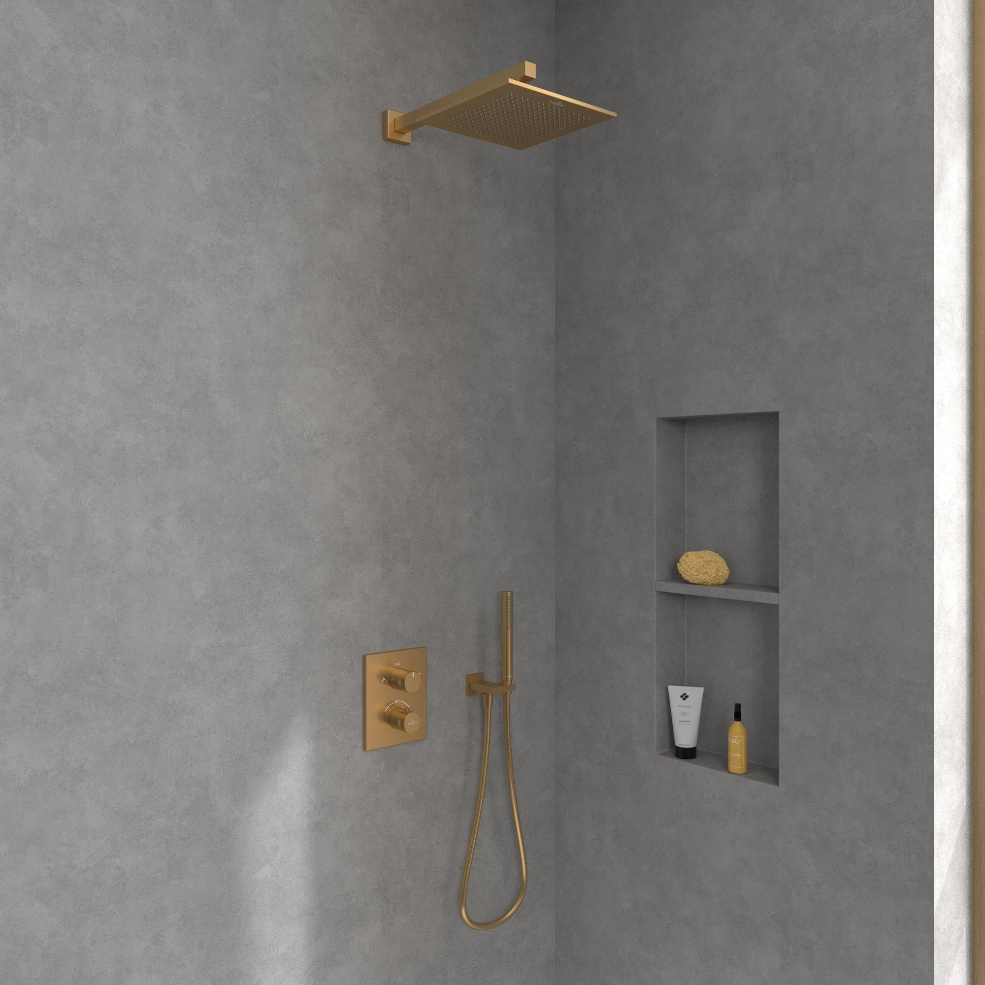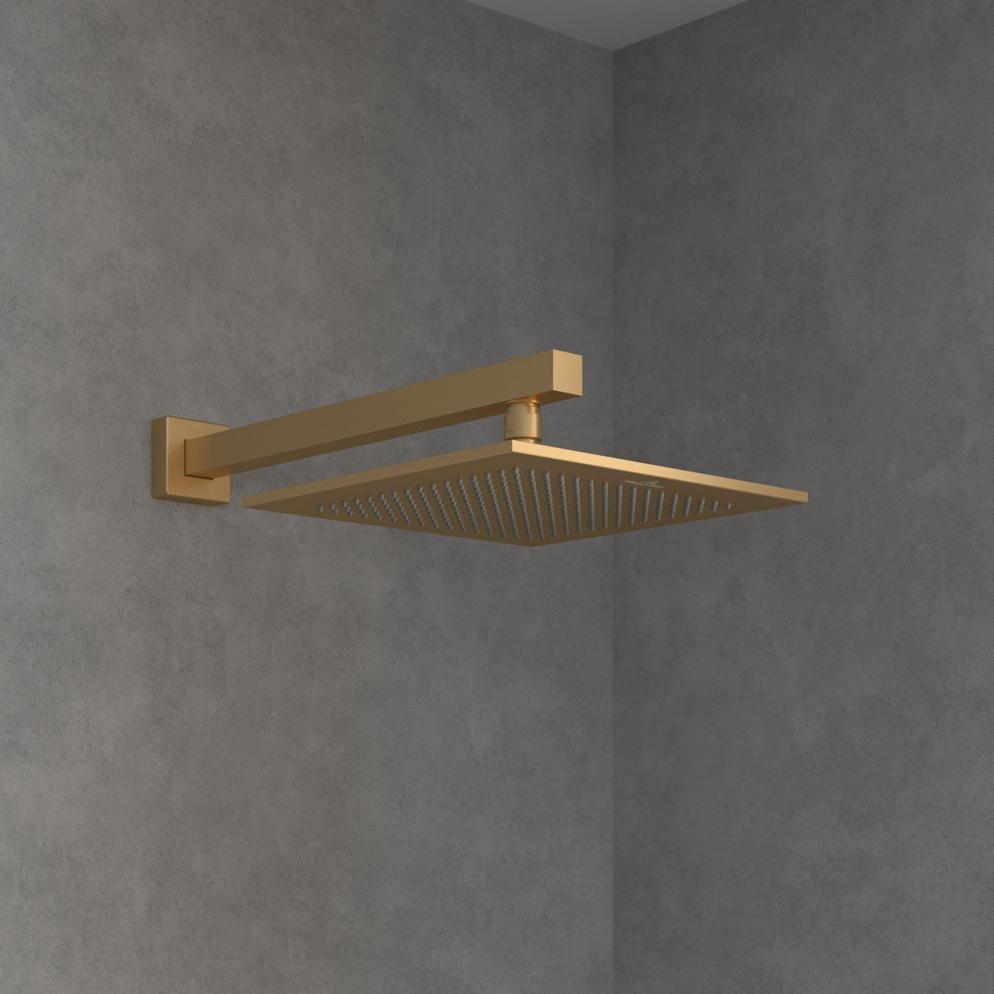 La forme carrée épurée et la finition brushed gold font de cette tête de douche un véritable point de mire dans votre salle de bains. Sa brillance mate et chaude paraît raffinée et moderne sans être tape-à-l’œil. Elle convient donc parfaitement aux salles de bains contemporaines où les détails font la différence. Combinez la tête de douche avec un bras de douche assorti mural ou plafond et harmonisez la couleur avec vos robinets, votre mitigeur de douche thermostatique et vos accessoires pour un ensemble cohérent. La hauteur compacte de la pomme de douche la rend en outre adaptée aussi bien aux grandes douches à l’italienne qu’aux plafonds plus bas, à condition de la combiner avec un bras de douche approprié.