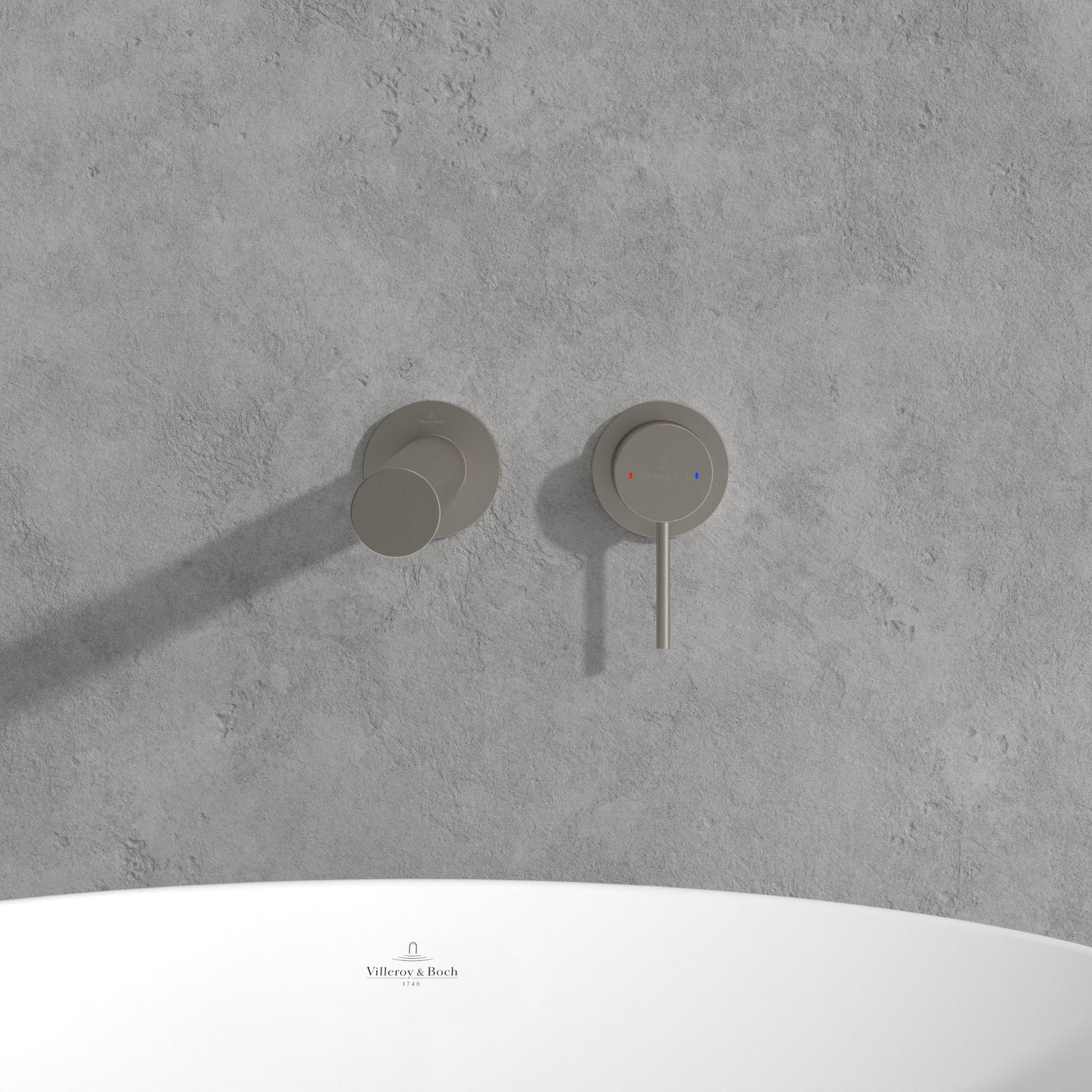 La finition en matt brushed nickel (aspect INOX) donne immédiatement à votre salle de bains une allure haut de gamme et design. Cette teinte est subtile et chaleureuse, ce qui lui permet de se marier à merveille avec des matériaux naturels tels que le bois et la pierre, mais aussi avec des meubles blancs ou foncés. Les formes arrondies et organiques du bec et de la poignée apportent un look doux et accueillant, tandis que les lignes droites confèrent au robinet une touche résolument moderne. Comme le robinet est monté au mur, l’ensemble paraît plus spacieux et moins chargé, ce qui représente un atout majeur surtout dans les salles de bains compactes. De plus, le design s’accorde parfaitement avec les autres robinetteries et accessoires de la même couleur, ce qui vous permet de créer facilement un style harmonieux dans toute la salle de bains.
