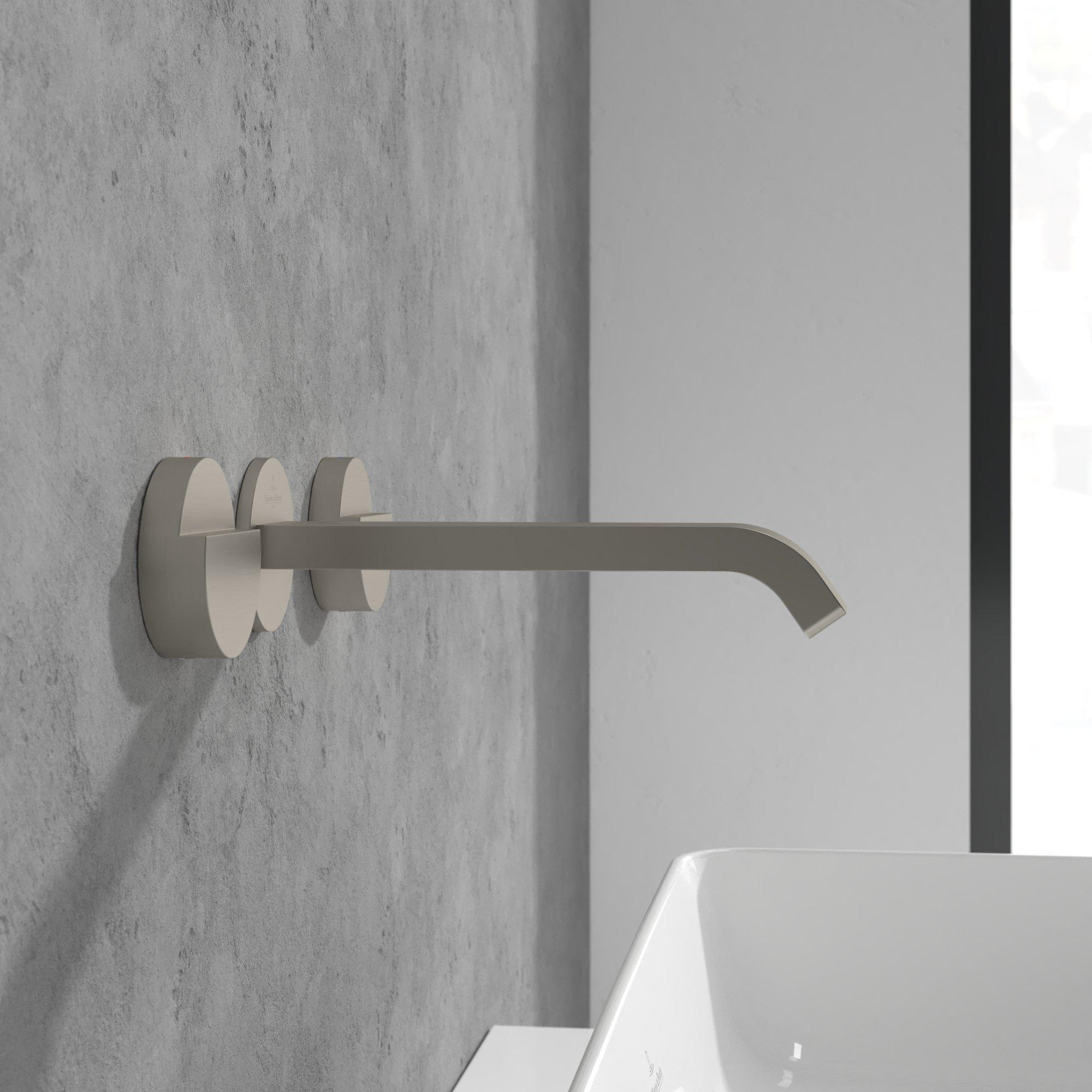 Le design fin et arrondi et la finition nickel brossé mat confèrent immédiatement à votre salle de bains une allure haut de gamme, presque comme un spa. La douce brillance de la couleur inox se marie parfaitement avec les lavabos blancs, les meubles aspect béton et les matériaux naturels tels que le bois ou la pierre. Comme il s’agit d’une installation murale à trois trous, vous créez une image symétrique avec les deux poignées de part et d’autre du bec : parfait si vous aimez le calme et l’équilibre dans les lignes. La commande avec deux poignées rotatives offre une sensation classique, tout en paraissant moderne et raffinée, ce qui donne une combinaison intemporelle qui ne se démode pas de sitôt.