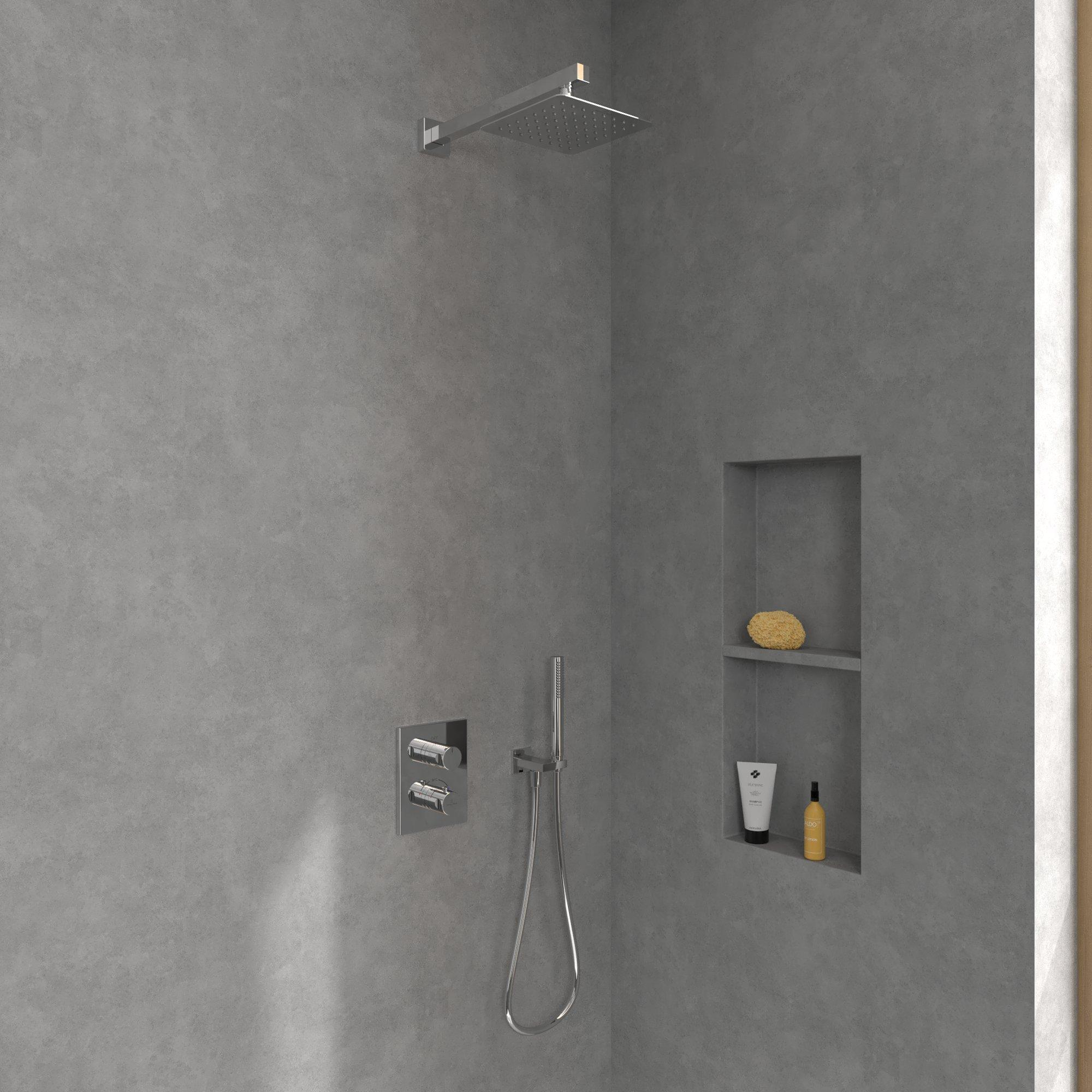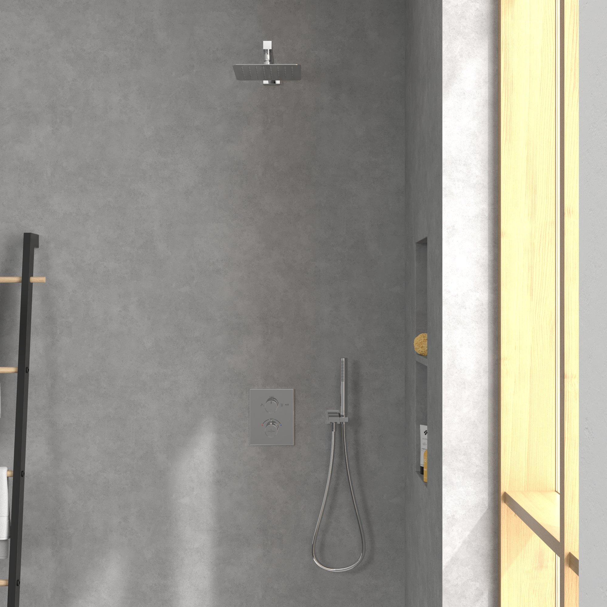 - Pomme de douche de tête carrée de 20 x 20 cm, idéale pour les salles de bains modernes.