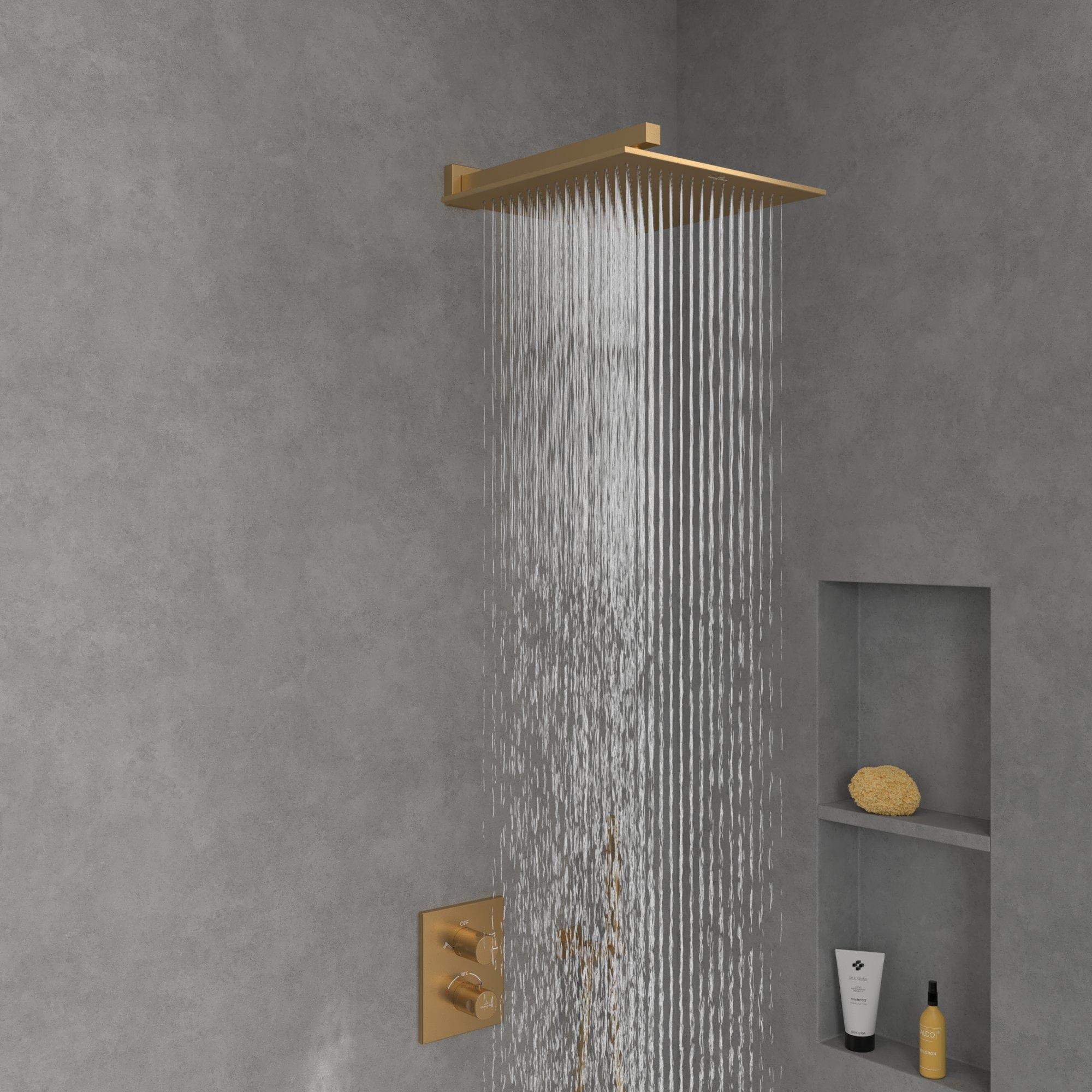 Vous recherchez une douche de tête généreuse type douche de pluie qui donne immédiatement un aspect plus luxueux à votre coin douche ? Cette pomme de douche de tête carrée en or brossé est idéale si vous aimez une eau confortable et douce ainsi qu’un design épuré et moderne. Avec un format de 35 cm, vous profitez d’un jet large et enveloppant qui s’intègre parfaitement dans une douche à l’italienne ou un espace de douche spacieux. La combinaison d’un laiton de haute qualité, d’une technique d’économie d’eau bien pensée et d’un entretien facile fait de ce produit un excellent choix si vous souhaitez faire évoluer votre salle de bains vers un niveau hôtelier, sans renoncer à la facilité d’utilisation au quotidien.