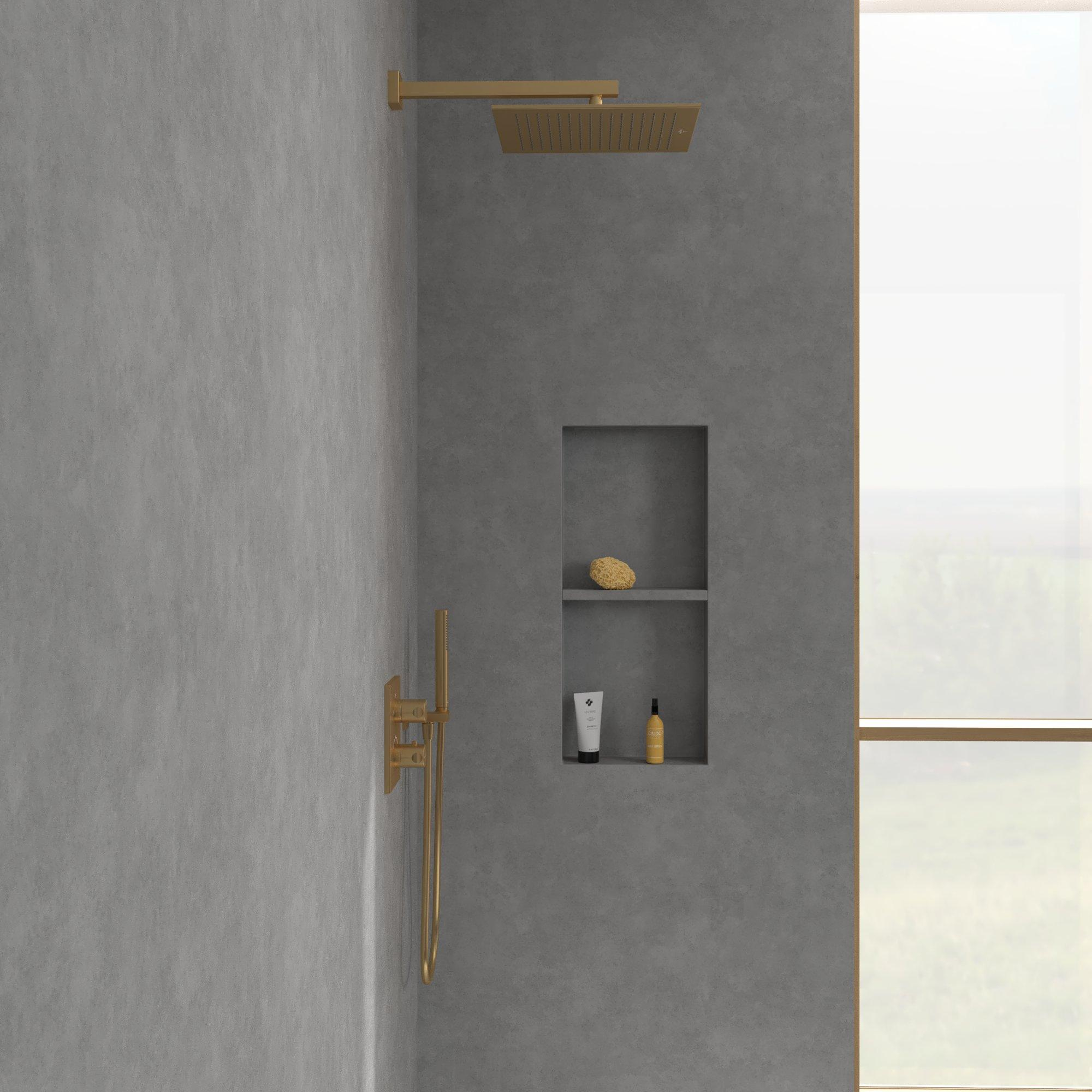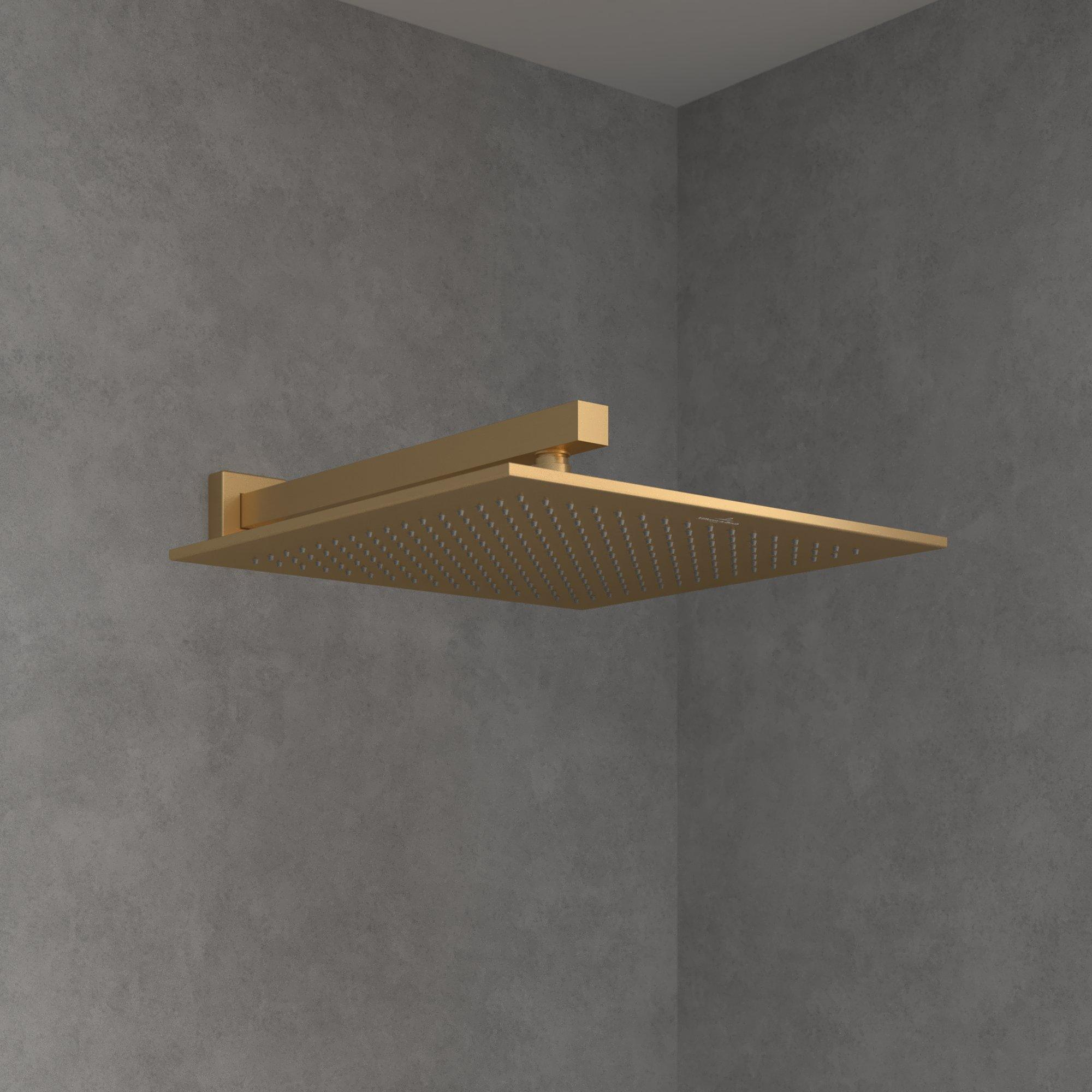 La forme carrée et le design fin font de cette pomme de douche de tête un véritable point de mire dans votre douche. La finition brushed gold apporte une allure chaude et chic qui se marie à merveille aussi bien avec les salles de bains modernes qu’avec les salles de bains de style hôtelier plus luxueuses. Pensez à des accents noirs mats, des carreaux effet marbre ou au contraire des teintes naturelles et sobres : cette couleur ajoute immédiatement du caractère et de l’exclusivité. Comme la douche est combinée avec un bras de douche de pluie assorti, vous pouvez parfaitement adapter la position à votre configuration de douche, par exemple au centre d’une douche à l’italienne. Vous créez ainsi un ensemble harmonieux où confort, style et fonctionnalité se rejoignent en toute fluidité.