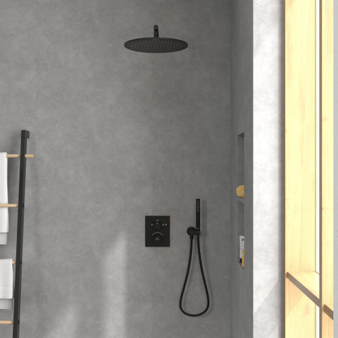 Le noir mat est LA couleur pour ceux qui veulent combiner caractère et sérénité. Cette pomme de douche de tête forme un élément discret mais puissant au plafond ou sur un bras de douche de pluie assorti. La forme ronde confère une apparence douce et harmonieuse, tandis que la finition mate offre un aspect robuste et moderne. Ce modèle convient donc parfaitement aux salles de bains industrielles avec des carreaux sombres, mais aussi à un style scandinave apaisant ou hôtel-chic avec des tons clairs. Combinez la douche avec des robinets noirs, des ensembles de douche ou des accessoires pour un bel ensemble, ou utilisez-la justement comme élément contrastant dans une zone de douche claire. Vous créez ainsi facilement une apparence cohérente et haut de gamme.