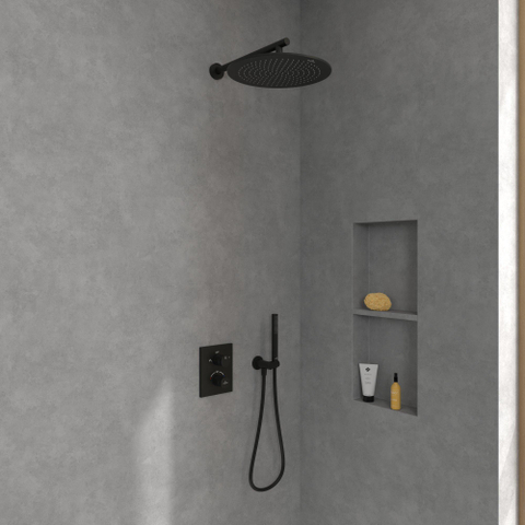 - Finition noire mate pour une apparence moderne et élégante qui s’intègre parfaitement dans les salles de bains contemporaines.