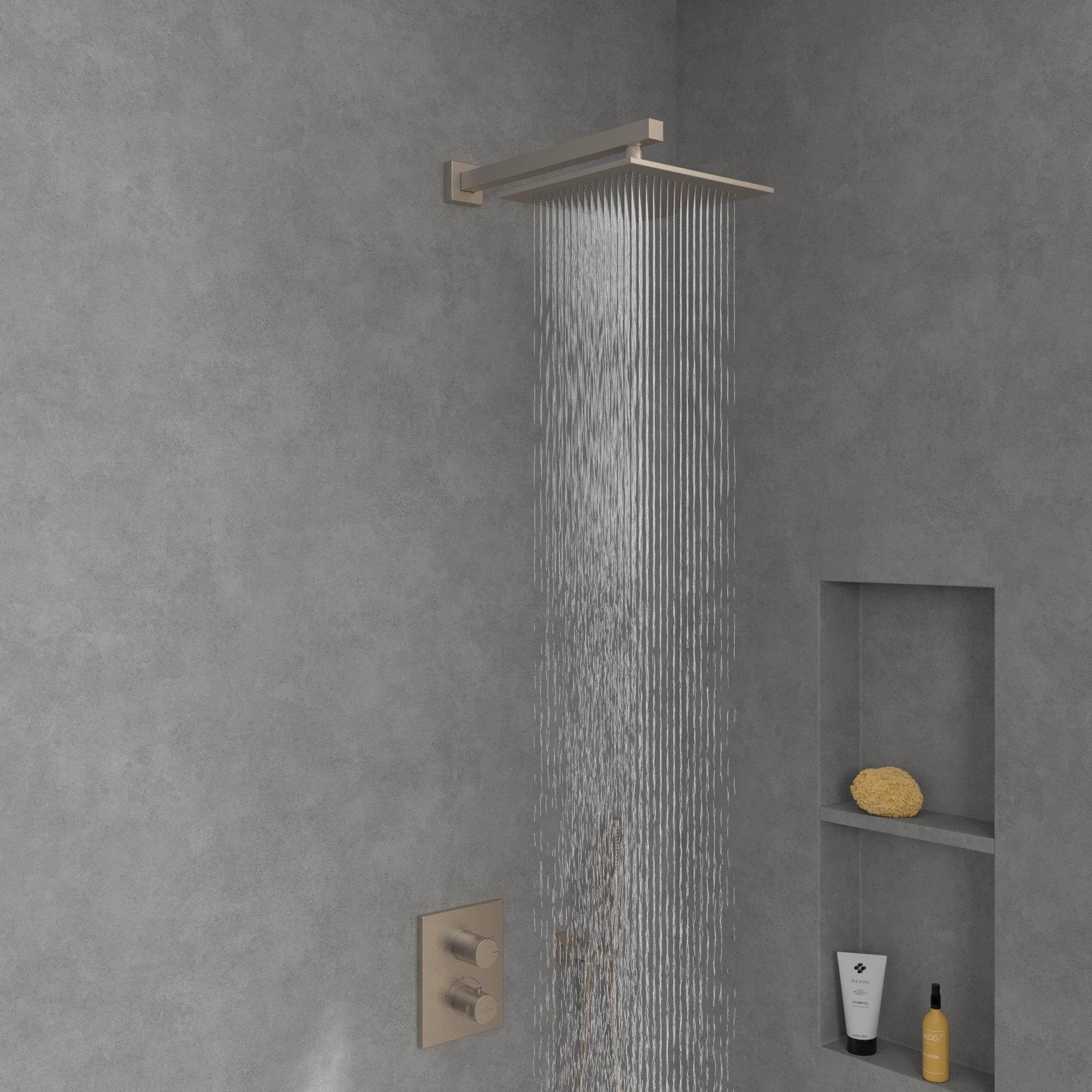 Vous recherchez une douche de pluie haut de gamme qui transforme votre rituel de douche quotidien en un moment apaisant de pure détente ? Cette pomme de douche de tête carrée avec finition nickel mat s’intègre parfaitement dans une salle de bains moderne au design épuré, mais trouve également parfaitement sa place dans un intérieur intemporel aux teintes douces et naturelles. Grâce à son format généreux, vous profitez d’un jet d’eau large et homogène qui enveloppe tout votre corps, idéal si vous aimez le confort bien-être tout en souhaitant économiser l’eau. Que vous souhaitiez moderniser votre douche actuelle ou composer une toute nouvelle douche à l’italienne, avec cette pomme de douche de tête vous optez pour une combinaison de design, de confort et de technologie intelligente, adaptée aussi bien aux douches quotidiennes qu’aux longs moments de détente le week-end.