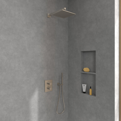Avec sa forme carrée épurée et sa finition en nickel brossé mat, cette pomme de douche de tête est un véritable accroche-regard dans la douche. Son aspect subtil façon inox se marie facilement avec des bras de douche et des accessoires noirs, chromés ou en inox, ce qui vous laisse une grande liberté dans la création du style de votre salle de bains. Sa forme plate et minimaliste s’accorde parfaitement avec les douches à l’italienne aux parois vitrées et grands carreaux, mais aussi avec un style scandinave épuré. Comme il s’agit d’une pomme de douche de tête universelle à combiner, vous pouvez l’intégrer facilement, avec un bras de douche de pluie adapté, aussi bien dans de nouvelles installations de douche que dans des configurations existantes.