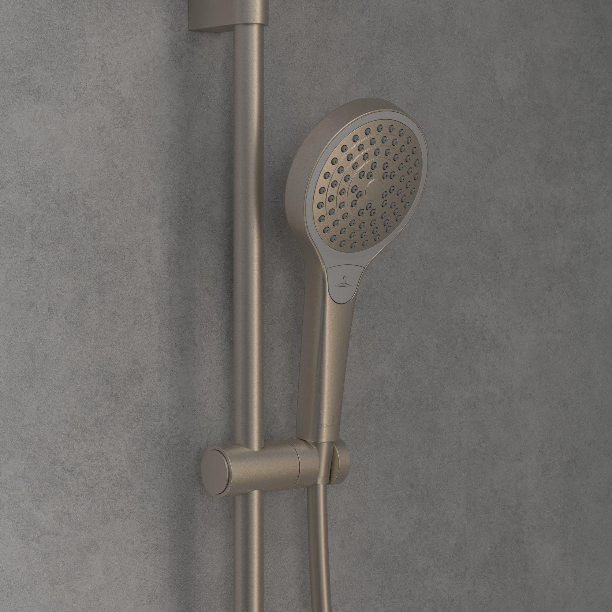 Villeroy & Boch Verve Showers Ensemble barre de douche avec trois fonctions pour montage mural - Nickel brossé mat (inox)