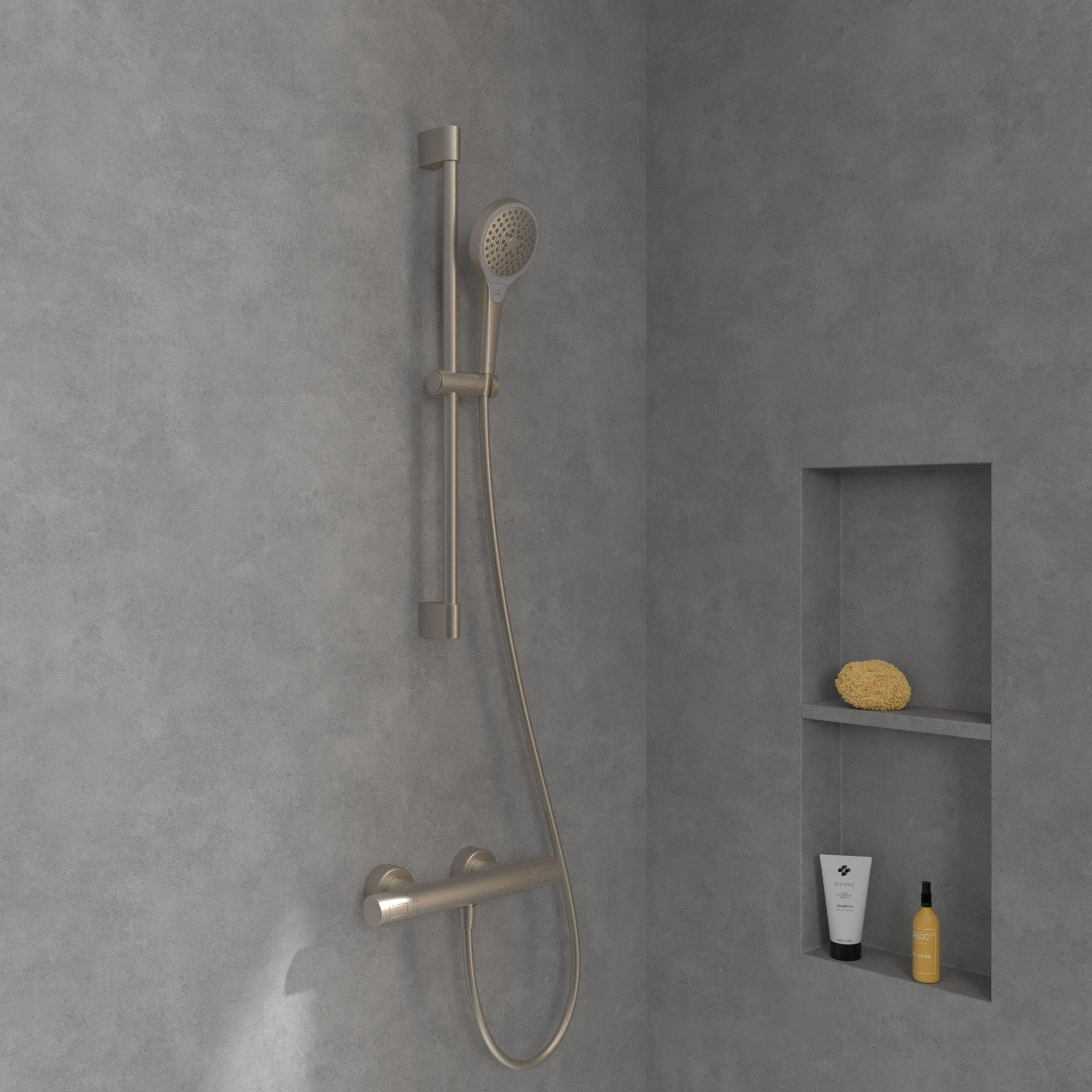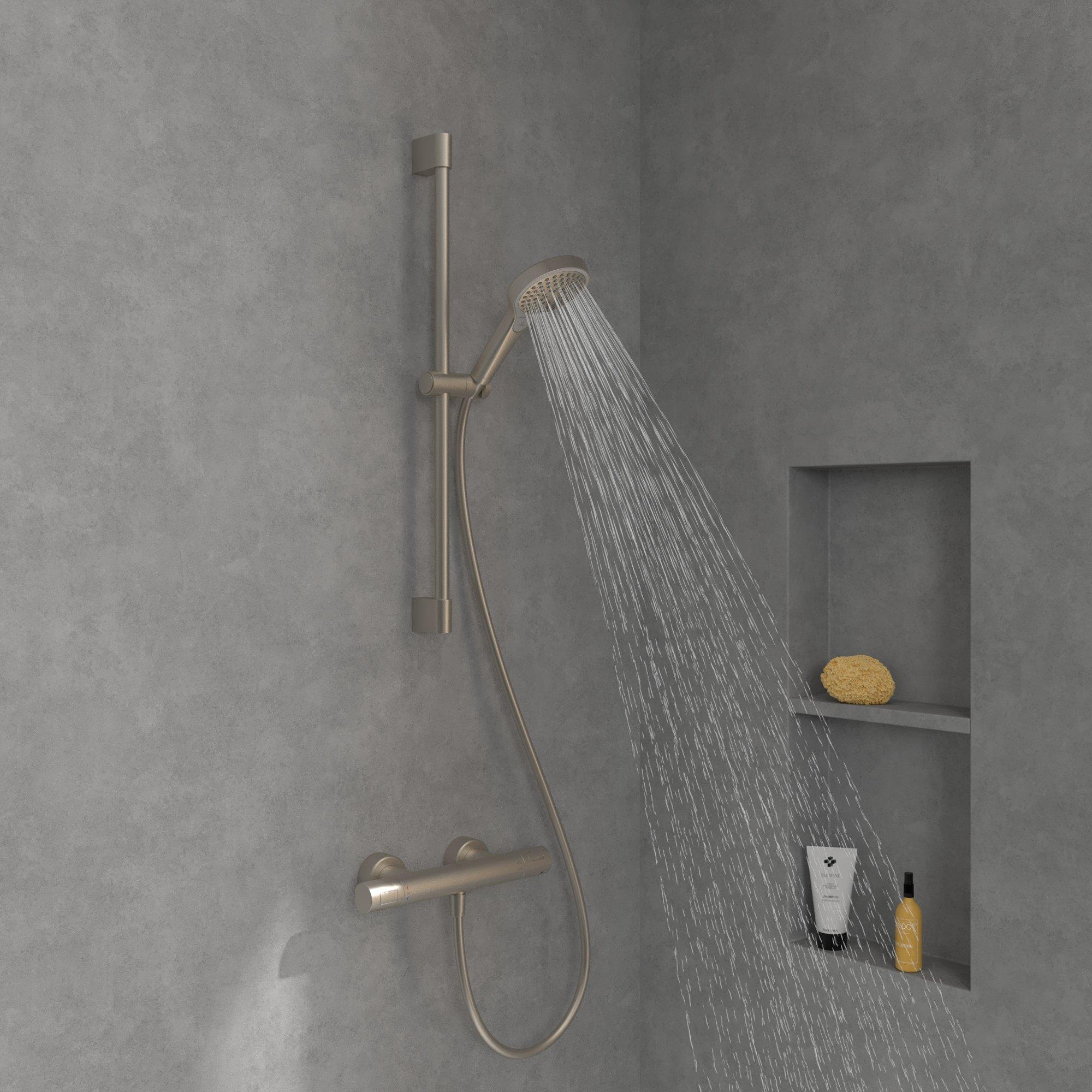Vous recherchez un ensemble barre de douche élégant qui fera immédiatement passer votre douche au niveau supérieur, sans rénovation complète de la salle de bains ? Cet ensemble est idéal pour ceux qui souhaitent combiner confort, design et facilité d’utilisation dans une solution bien pensée. Grâce aux trois types de jets différents, vous adaptez aisément l’expérience de douche à votre moment : d’une brève douche rafraîchissante à une longue séance de détente après une journée bien remplie. Le nickel brossé mat et discret s’harmonise parfaitement avec les ambiances modernes, industrielles et de style hôtel de luxe, mais trouve également très bien sa place dans une salle de bains familiale calme et intemporelle. Grâce à la barre de douche réglable, l’ensemble convient aux jeunes comme aux moins jeunes et s’intègre aussi bien dans les petites salles de bains urbaines que dans les douches à l’italienne plus spacieuses. Vous optez ainsi, en un seul choix, pour un système de douche durable et pratique qui restera agréable à utiliser au quotidien pendant de nombreuses années.