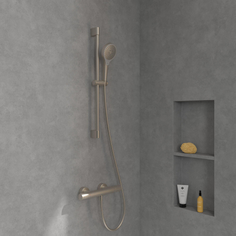 Le nickel brossé mat (aspect inox) n’offre pas seulement un look luxueux et moderne, il est également très pratique à l’entretien. Les traces de doigts et les taches d’eau sont moins visibles que sur le chrome brillant, de sorte que votre douche paraît soignée plus longtemps. Les buses anticalcaires spéciales peuvent être nettoyées aisément d’un simple passage du doigt, ce qui limite l’accumulation de calcaire et garantit un jet bien plein. Combiné à la surface facile d’entretien, vous prolongez ainsi la durée de vie de l’ensemble et vous vous épargnez beaucoup de nettoyage. Les matériaux robustes et la finition bien étudiée vous permettent de compter pendant des années sur une solution de douche fiable et confortable, sans devoir sans cesse penser à son remplacement.