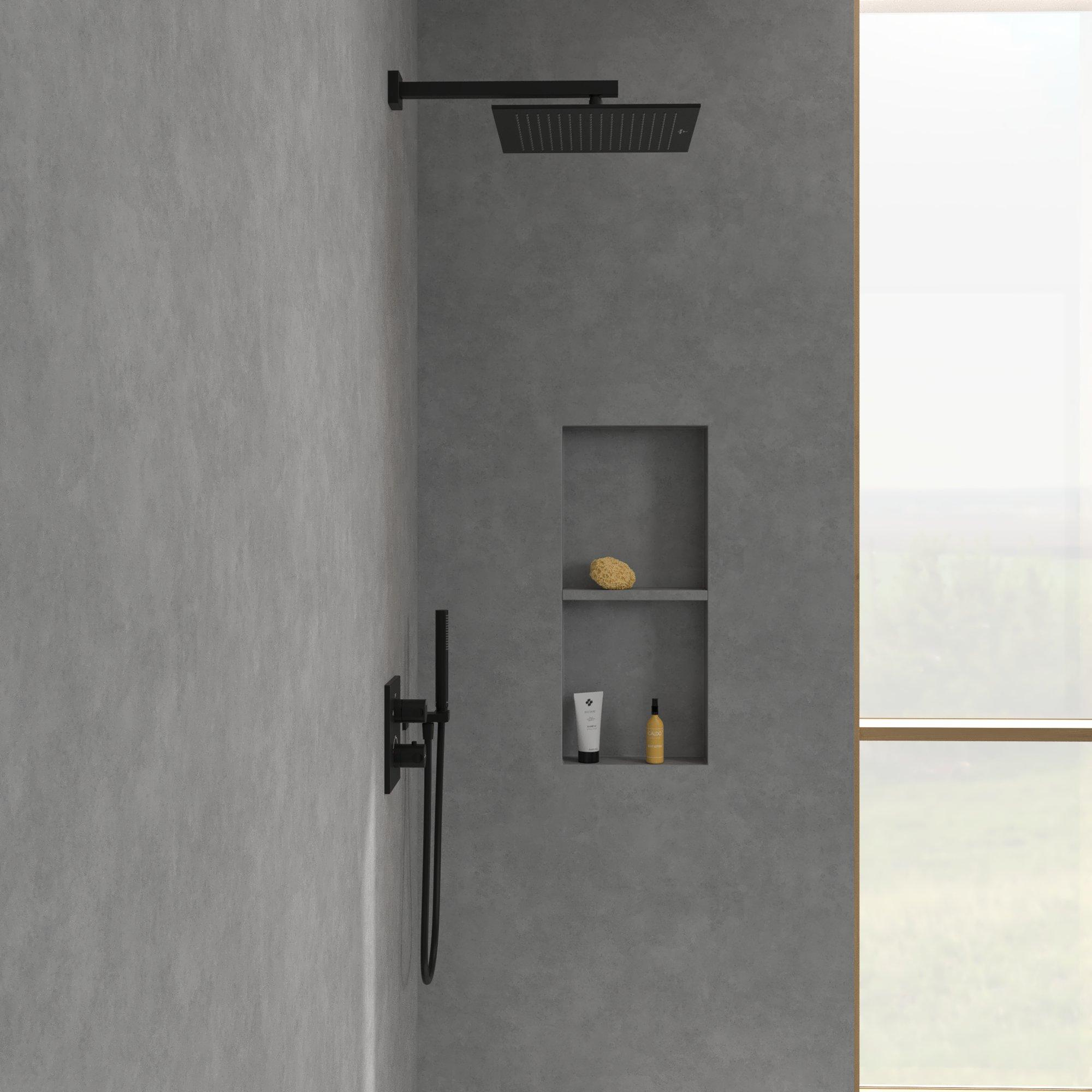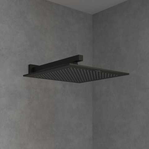 - Grande tête de douche carrée d’environ 35 x 35 cm pour un jet pluie large et confortable.