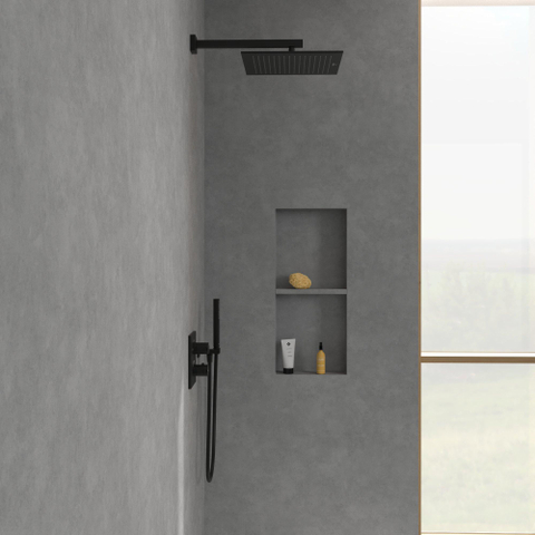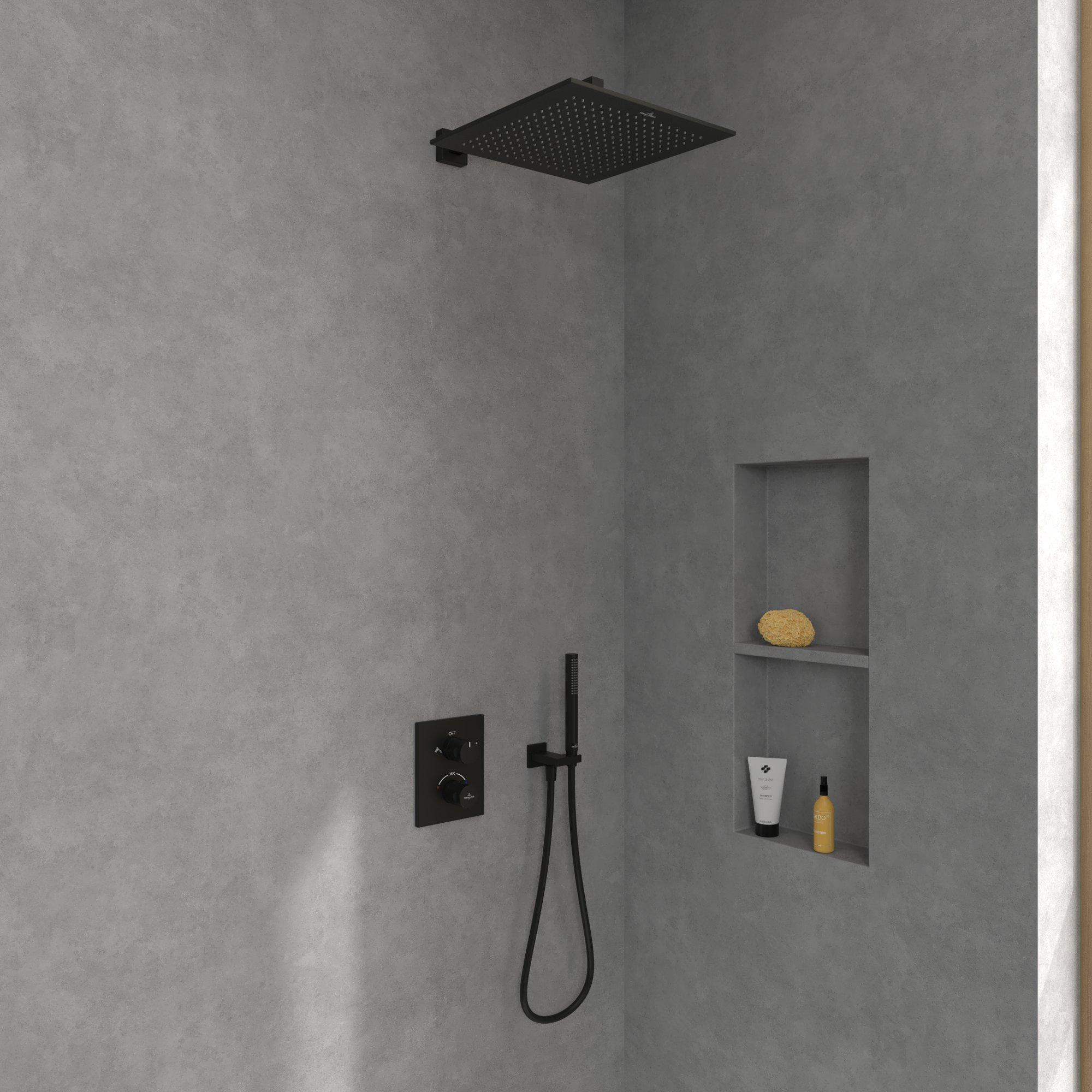 - Finition noire mate pour une apparence moderne, luxueuse et intemporelle dans votre espace douche.