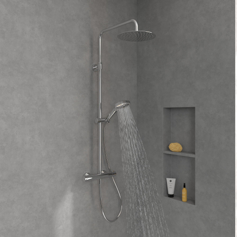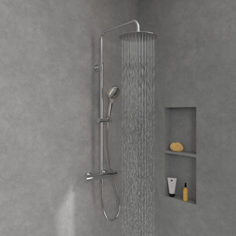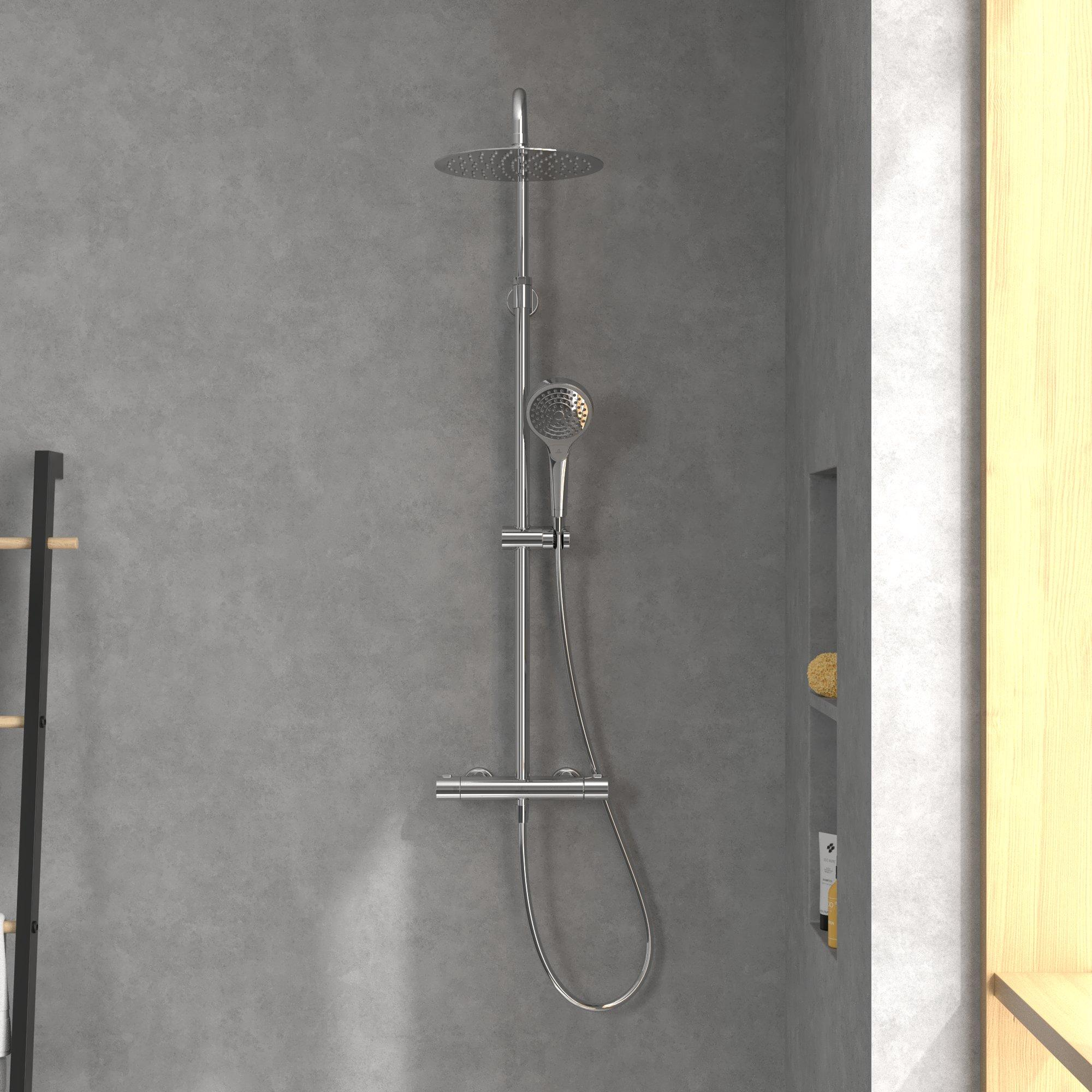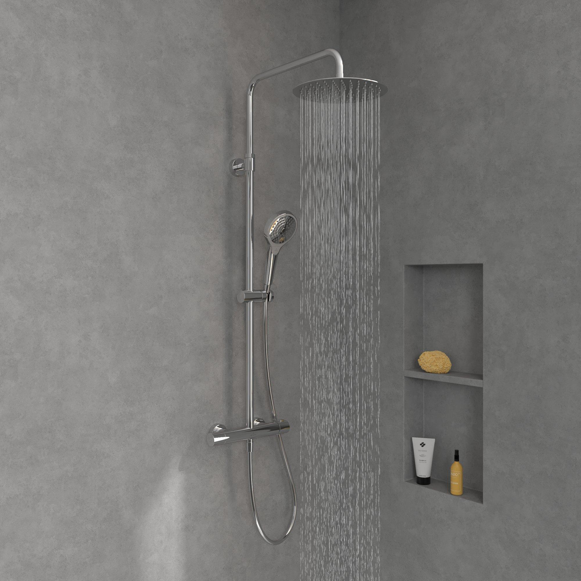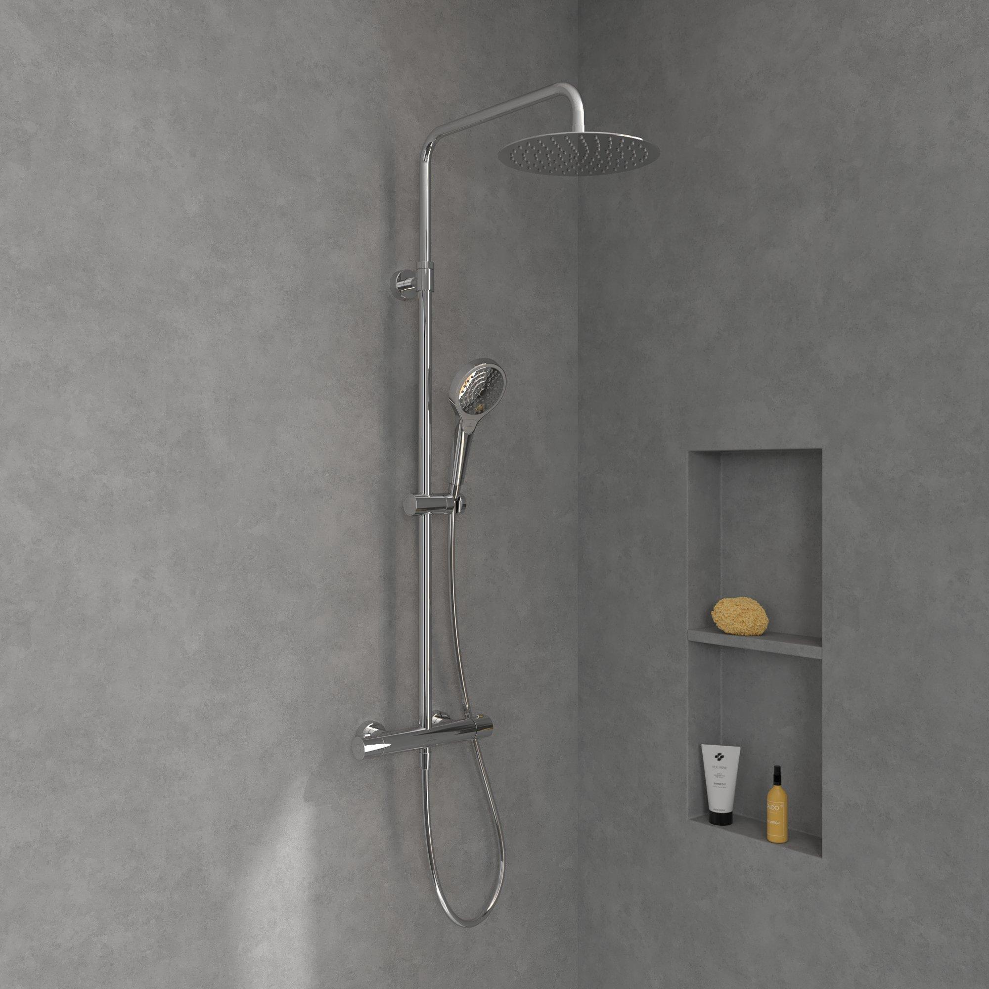 - Comprend un mitigeur thermostatique et un flexible de douche de 1600 mm