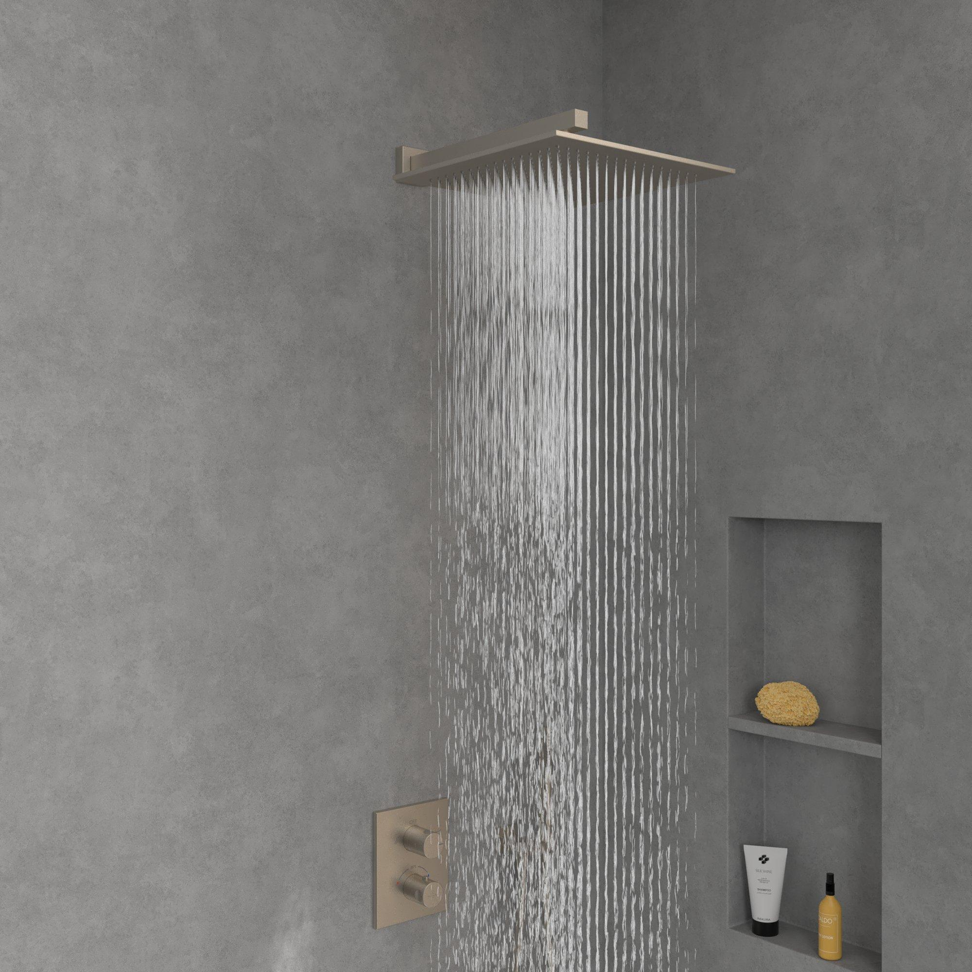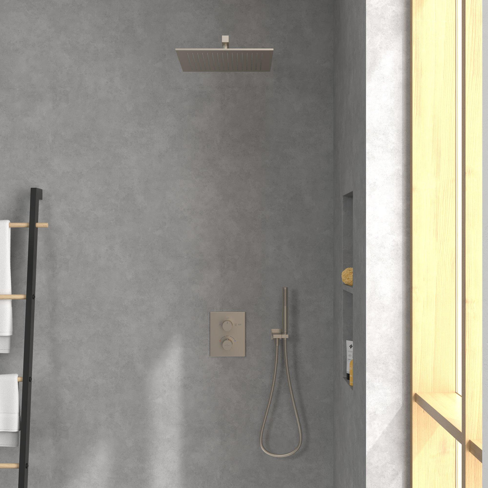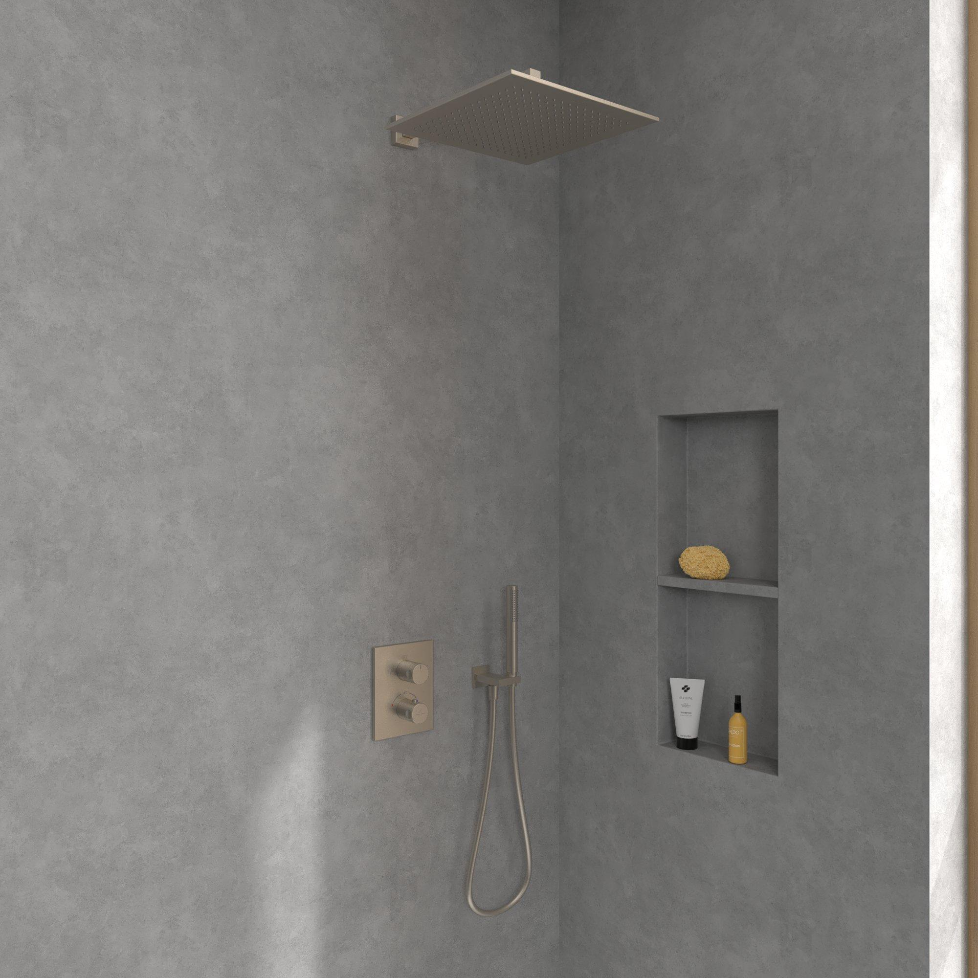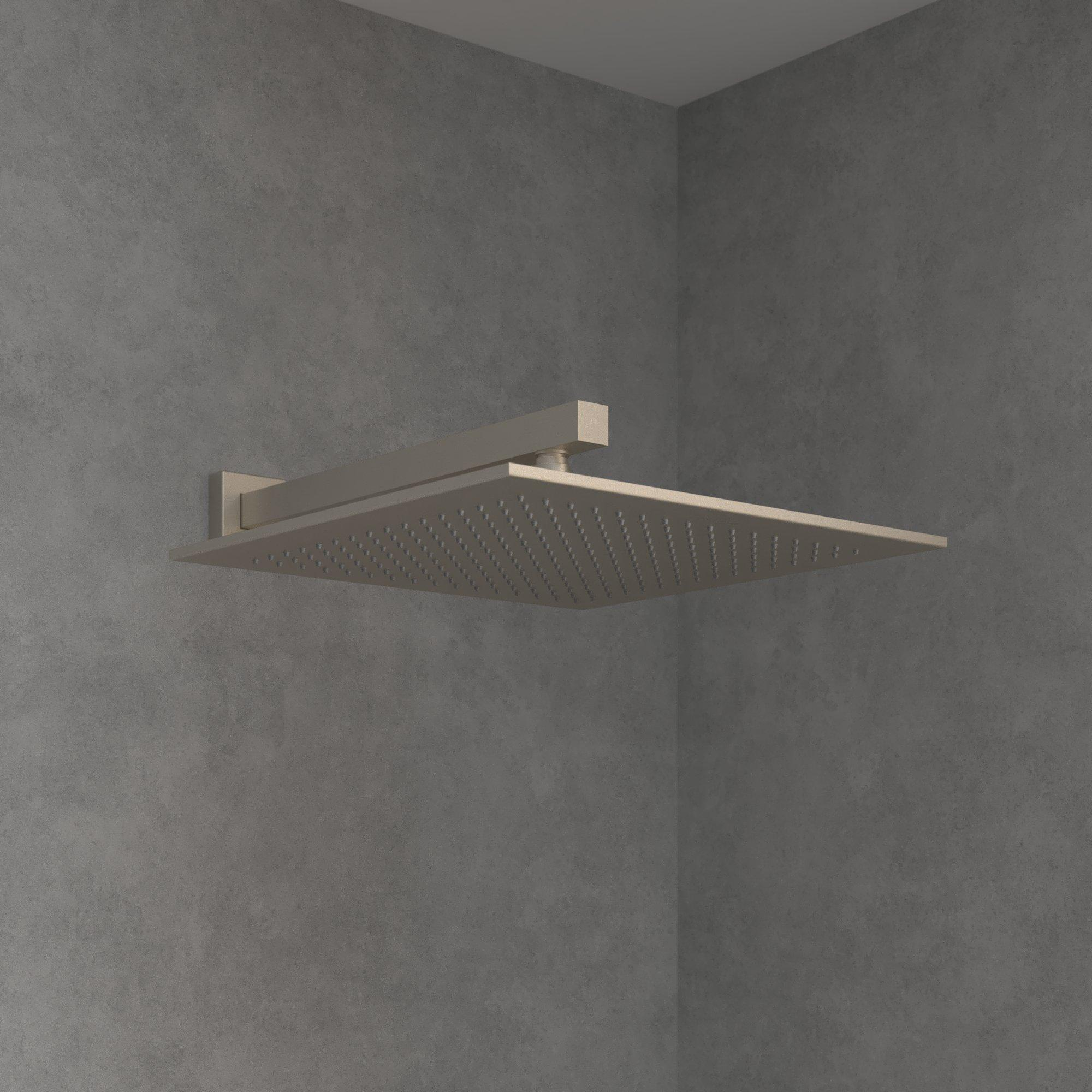 La finition en nickel brossé mat confère à cette douche de tête un aspect luxueux et moderne qui se marie à merveille avec des robinets de douche effet inox, des profils de niches ou des accessoires. Le design carré et plat affiche un look épuré et minimaliste, créant un ensemble apaisant dans la salle de bains et s’intégrant sans effort dans une configuration de douche design. De plus, le laiton de haute qualité comme matériau de base est robuste et fiable, ce qui assure une sensation de solidité et une longue durée de vie. En choisissant cette version, vous optez pour un élément phare élégant qui élève visuellement votre douche à un niveau supérieur.