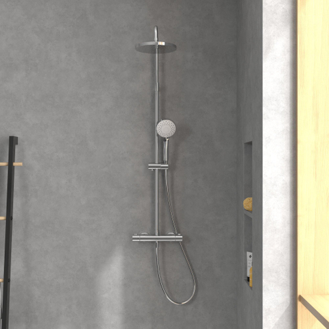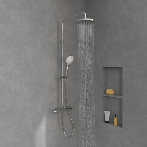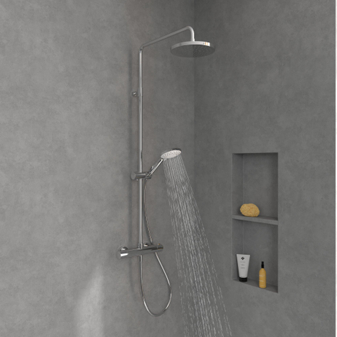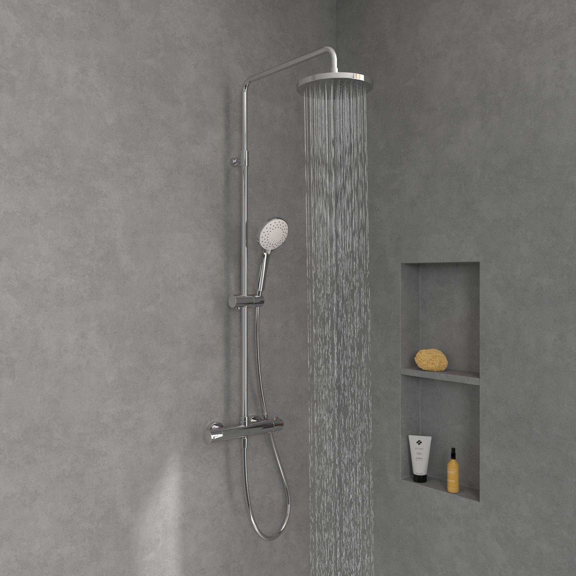 - Comprend une douche de tête, une douchette à main, un flexible de douche (1600 mm) et un thermostat