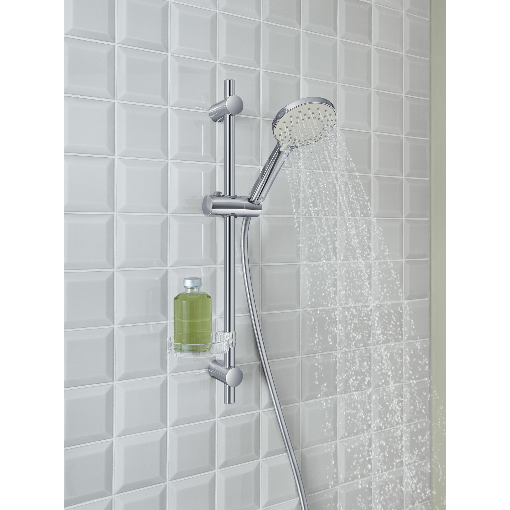 - Pomme de douche inclinable pour un angle optimal et moins d’éclaboussures