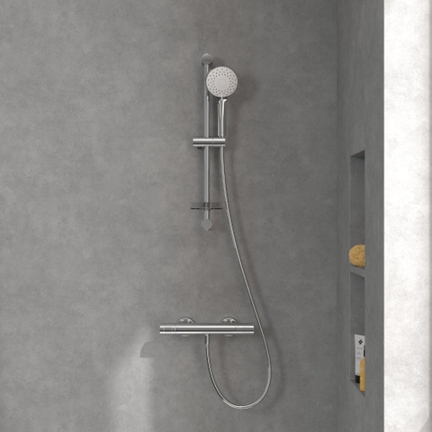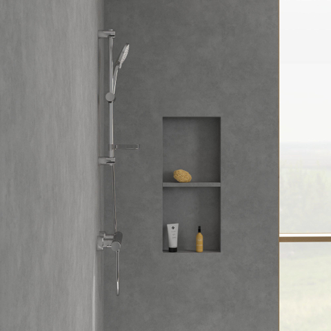 - Montage mural simple, également adapté comme remplacement d’un ensemble de barre de douche existant