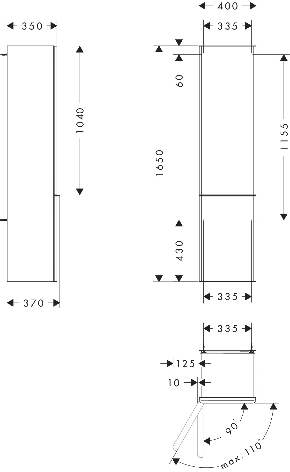 Hansgrohe Xelu colonne haute 165x40x35cm charnière L blanc brillant-noir mat