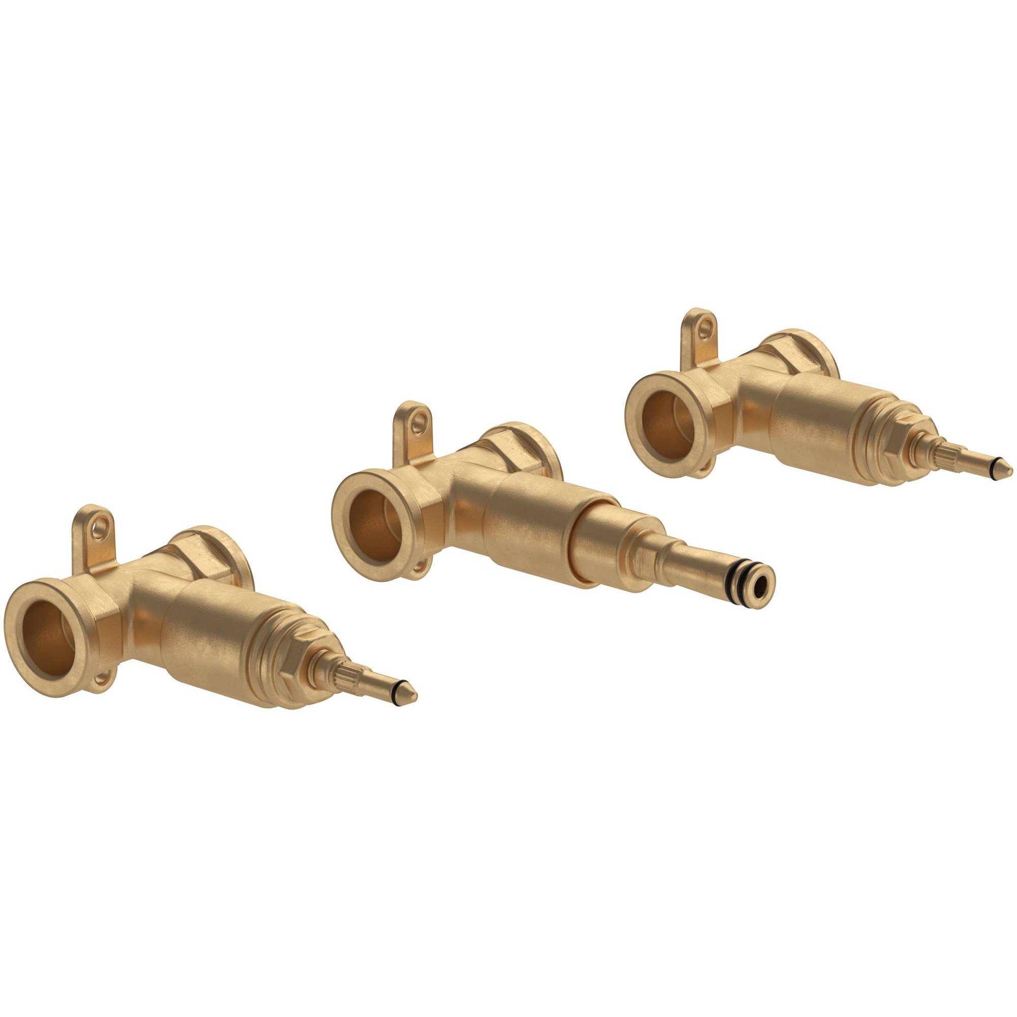 Avec cette unité d''encastrement, vous créez un robinet de lavabo élégant à trois trous, dans lequel le bec et les poignées de commande sont placés séparément sur le mur. Cela offre non seulement une allure luxueuse digne d''un hôtel, mais assure également plus d''espace sur le plan de lavabo. L''unité est spécialement développée pour le montage mural et constitue la base à laquelle la partie de finition assortie de la collection est raccordée. Grâce aux trois sorties, vous positionnez les éléments de manière symétrique et exactement à la hauteur souhaitée. Vous créez ainsi en une seule fois une base stable et professionnelle pour votre robinet de lavabo, sans devoir improviser avec des raccords séparés ou des connexions incertaines.