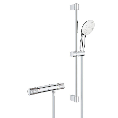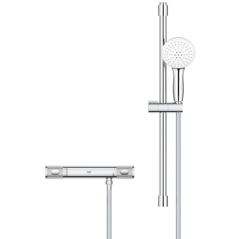 GROHE Grohtherm 1000 Performance Ensemble de douche - robinet de douche thermostatique - avec ensemble barre de douche - 60cm - douchette à main ronde - 2 jets - flexible de douche lisse - chrome