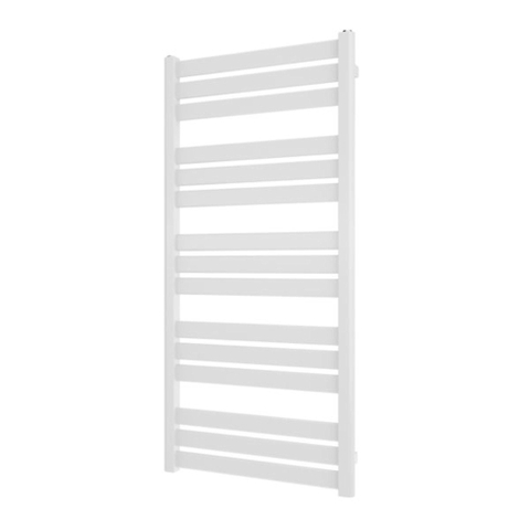 La hauteur généreuse d’environ 124,5 cm et la largeur de 60 cm confèrent à ce radiateur design une ligne verticale marquée dans la pièce, ce qui est particulièrement esthétique dans les salles de bains étroites. La finition blanche crée une base fraîche et apaisante et s’harmonise parfaitement avec les meubles de salle de bains blancs, la céramique et les carreaux clairs, tout en formant un contraste élégant avec des murs sombres ou des tons bois. Grâce à son design épuré, le radiateur présente un aspect minimaliste et ordonné, de sorte qu’il n’attire pas l’attention de manière excessive, mais constitue au contraire un ajout élégant. Le rapport entre la hauteur et la largeur est en outre idéal pour y suspendre des serviettes, afin qu’elles sèchent plus vite et que vous ayez toujours une serviette chaude à portée de main après la douche.