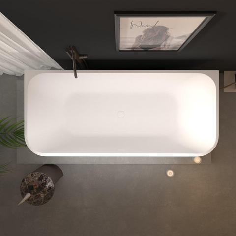 ZEZA Grand Baignoire semi-îlot - 180x80x58cm - avec une bonde- acrylique - blanc brillant