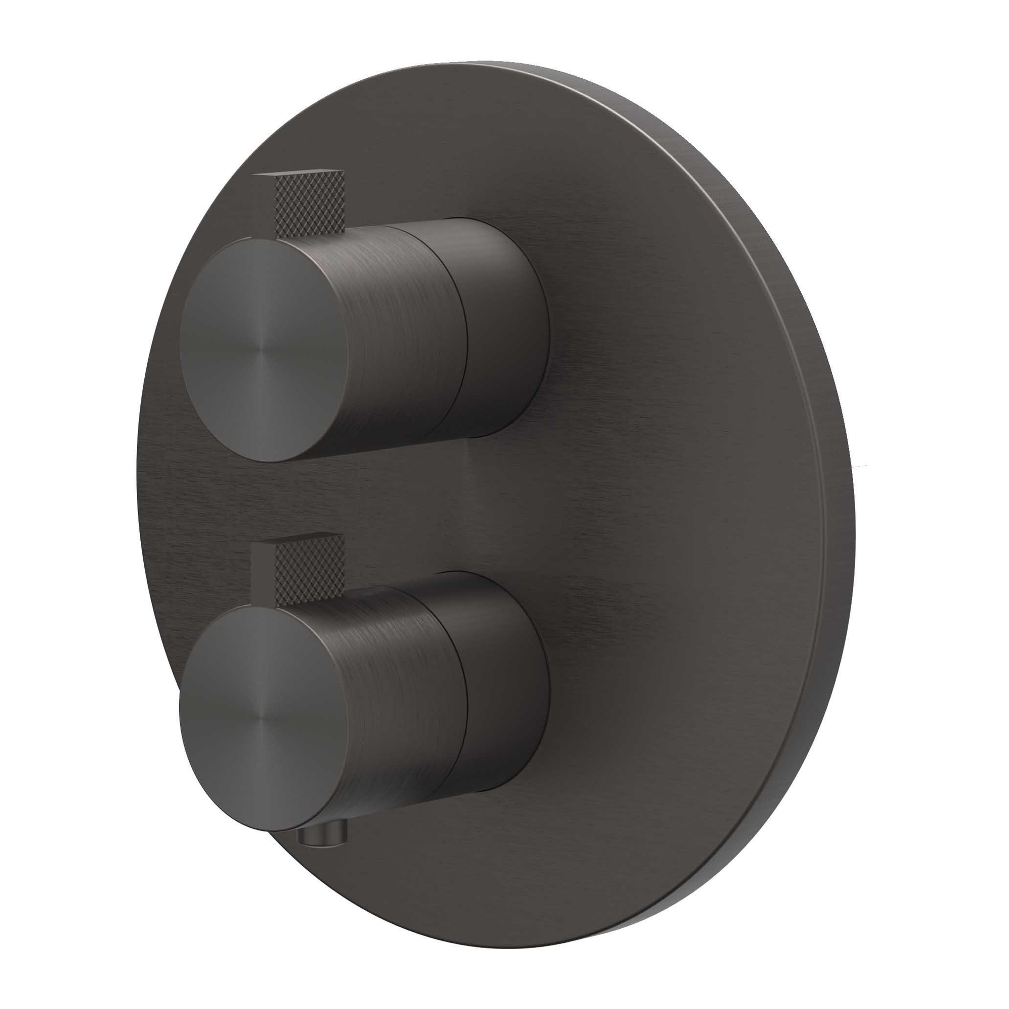 IVY Tribe Partie visible mitigeur thermostatique encastré avec inverseur d’arrêt 2 voies avec rosace ronde acier inoxydable 316 noir carbone brossé PVD