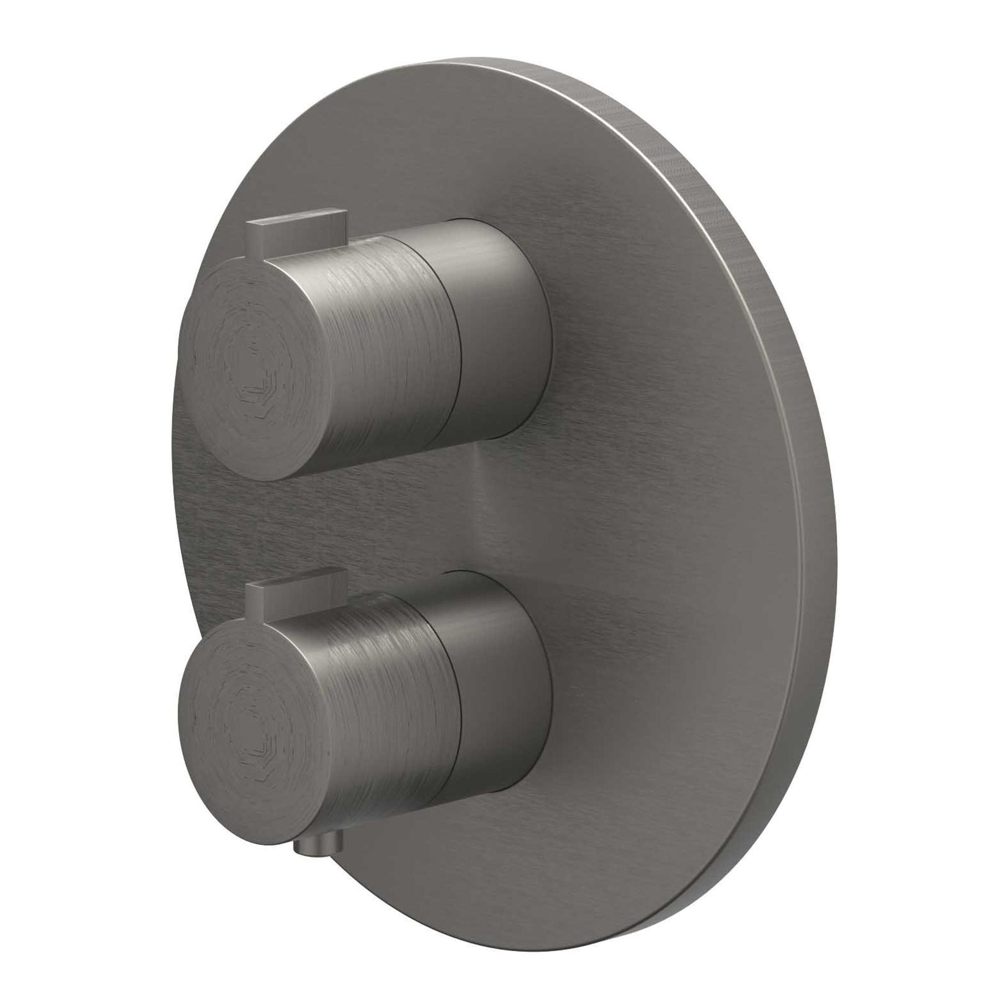 IVY Pact Partie apparente mitigeur thermostatique encastré avec 1 robinet d’arrêt séparé avec rosace ronde noir métal brossé PVD