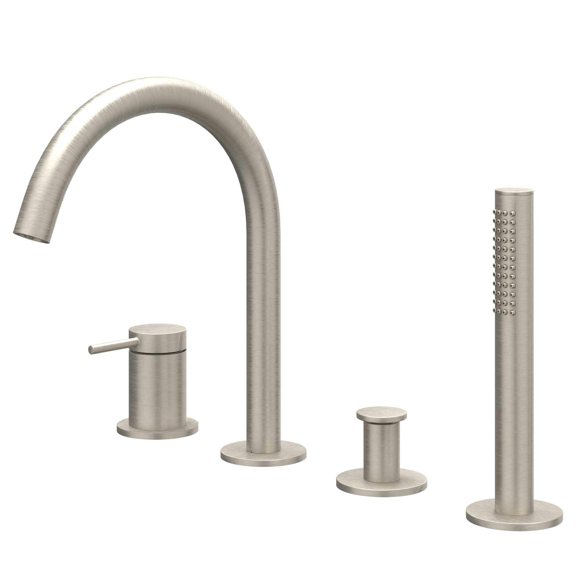 IVY Bond Combinaison pour rebord de baignoire mitigeur 4 trous avec bec orientable douchette extractible Nickel brossé PVD