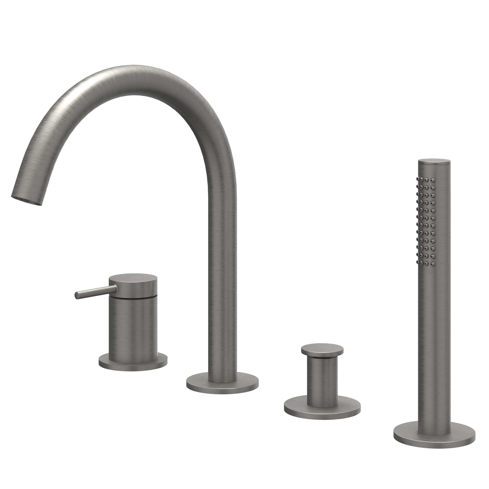 IVY Bond Combinaison pour rebord de baignoire mitigeur 4 trous avec bec pivotant douchette extractible Metal black brossé PVD