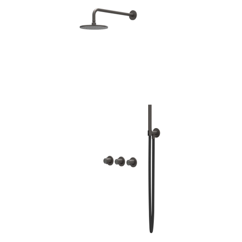 IVY Concord Ensemble de douche pluie - encastré - symmetry - 2 robinets d'arrêt - bras mural 40cm - pomme de douche principale medium 25cm - barre de douche avec sortie - flexible de douche 150cm - douchette barreau - RVS316 - noir carbone brossé PVD