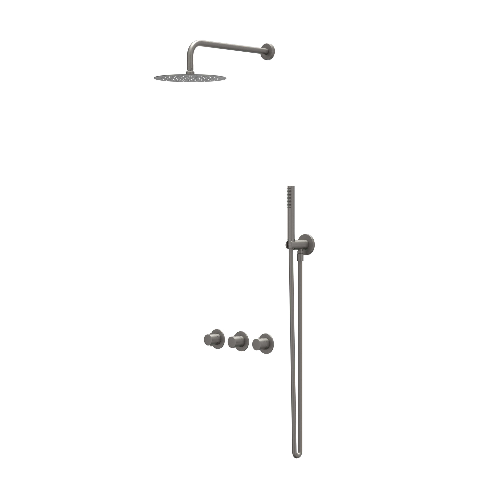 IVY Bond Ensemble de douche de tête - encastré - symmetry - 2 robinets d'arrêt - bras de plafond 15 cm - douche de tête medium 25 cm - support avec sortie - flexible de douche 150 cm - douchette satin spray - Metal black brossé PVD