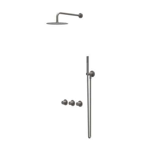 IVY Bond Ensemble de douche pluie - encastré - symmetry - 2 robinets d'arrêt - bras mural 40 cm - pomme de douche principale medium 25 cm - barre de douche avec sortie - flexible de douche 150 cm - douchette satin spray - PVD noir métal brossé