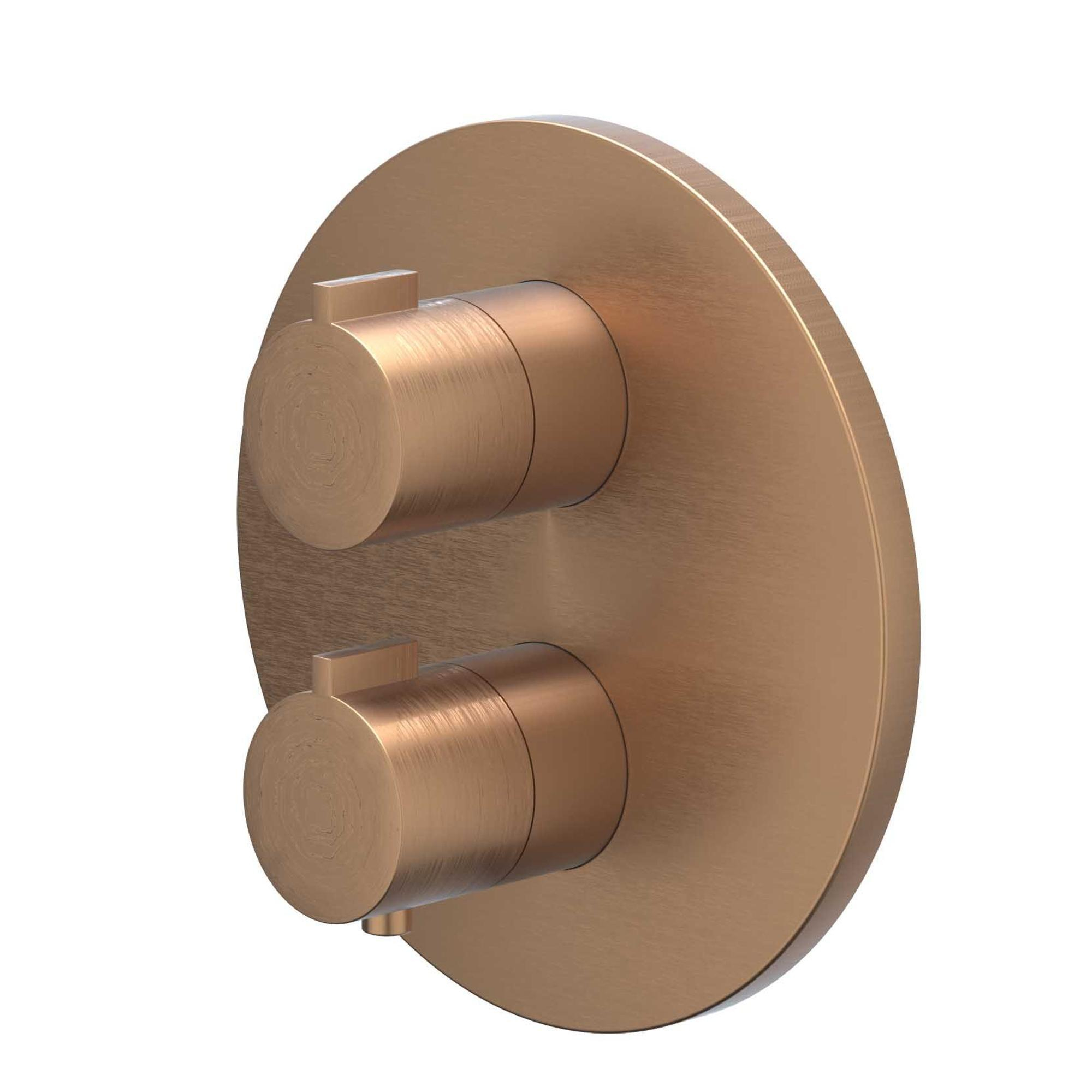 IVY Pact Ensemble de douche de pluie 2 encastré avec inverseur d'arrêt 2 voies - bras mural 40cm - douche de tête medium ronde 25cm - support avec sortie - flexible de douche 150cm - douchette satin spray cuivre brossé mat PVD