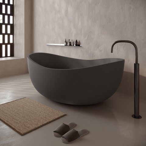 Ideavit IDEA.SENSE-D5 baignoire îlot - 160x97,5x58cm - anti-rayures - revêtement nano - incluant bonde pop-up - Béton D5