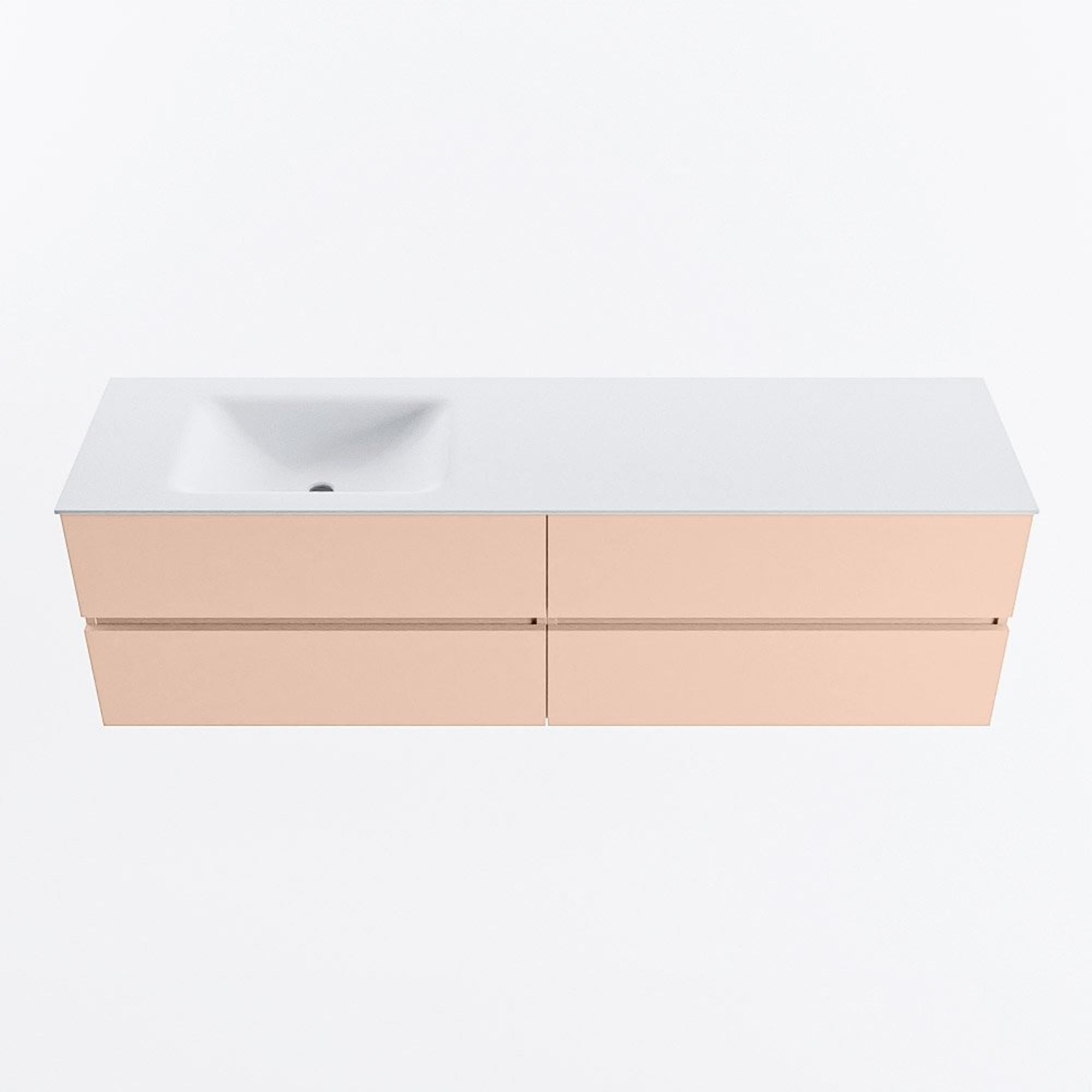Mondiaz Vica ensemble de meuble de salle de bain - 170cm - meuble sous lavabo rosee - 4 tiroirs - lavabo cloud gauche - 1 trou de robinet - version haute de 60cm - talc