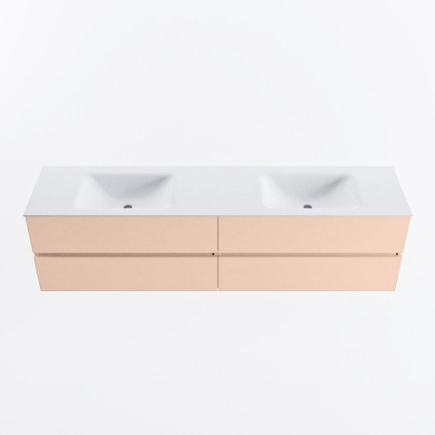 Mondiaz Vica ensemble de meuble de salle de bain - 190cm - meuble sous-vasque rosee - 4 tiroirs - lavabo cloud double - sans trous de robinet - version haute de 60cm - talc