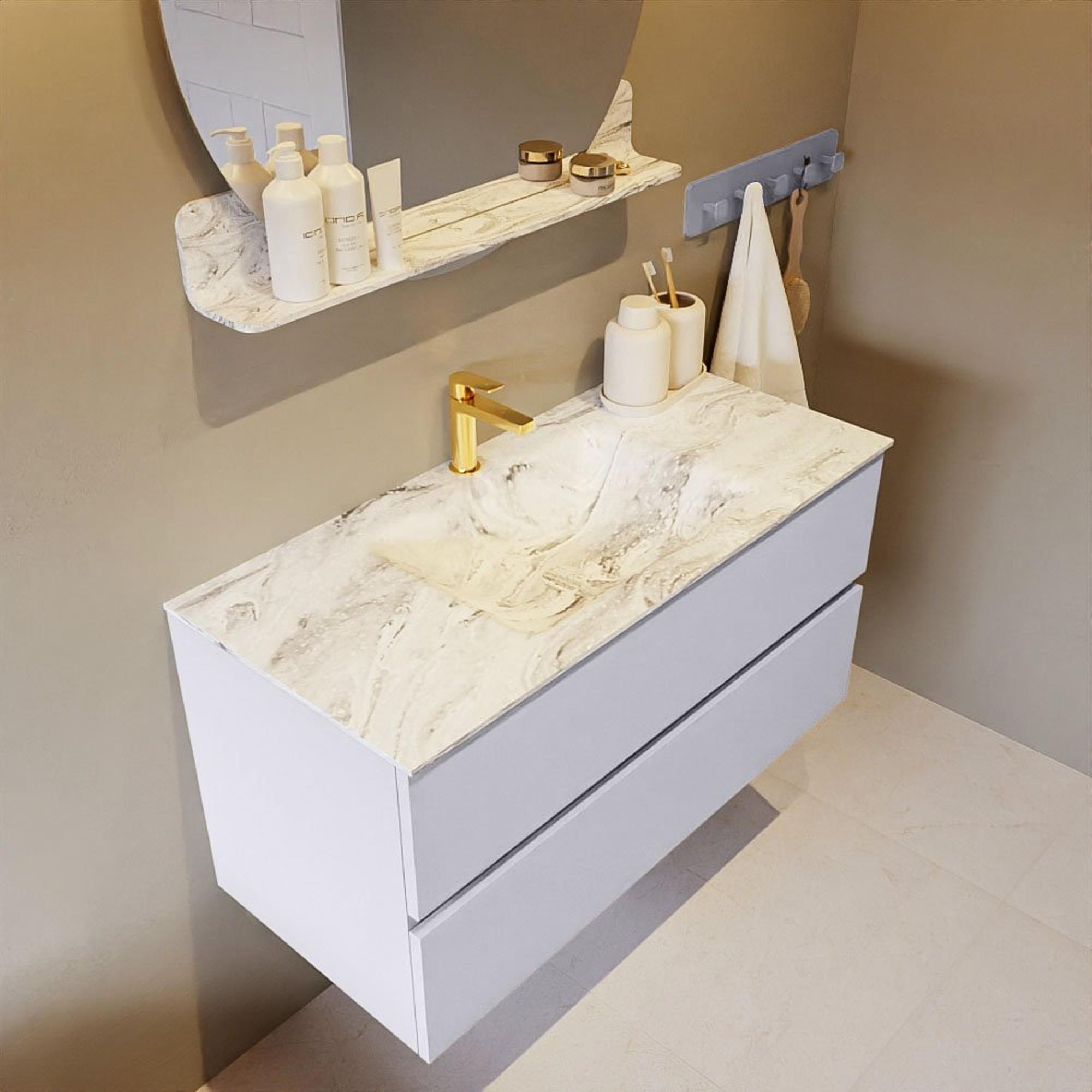 Mondiaz VICA-DLUX Ensemble de meuble de salle de bain - 100cm - meuble sous-vasque cale - 2 tiroirs - lavabo encastrée cloud milieu - 1 trou de robinet - version haute de 60cm - glace
