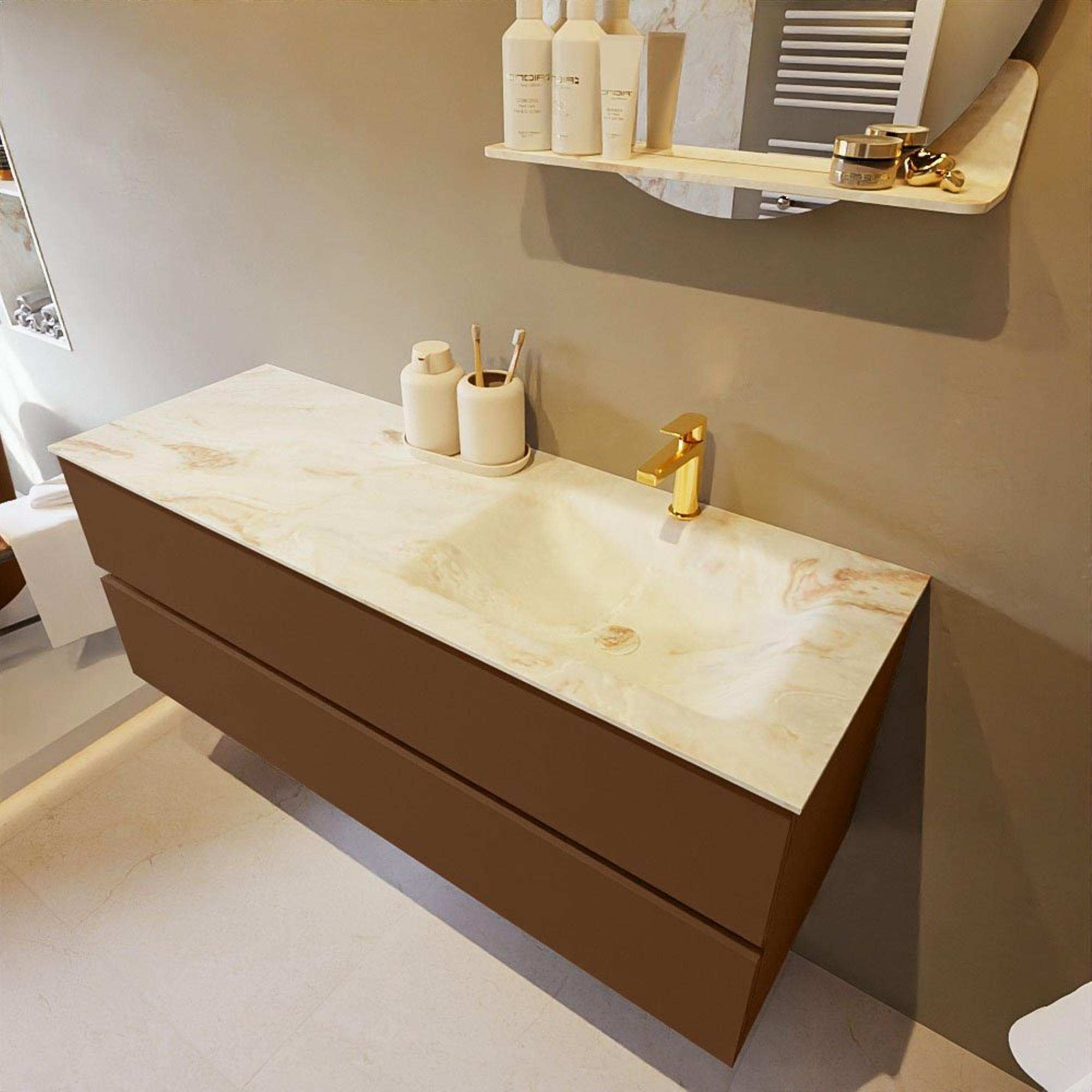 Mondiaz VICA-DLUX ensemble de meuble de salle de bain - 130cm - meuble sous-vasque reposant - 2 tiroirs - lavabo encastré cloud droite - 1 trou de robinet - version haute de 60cm - frape