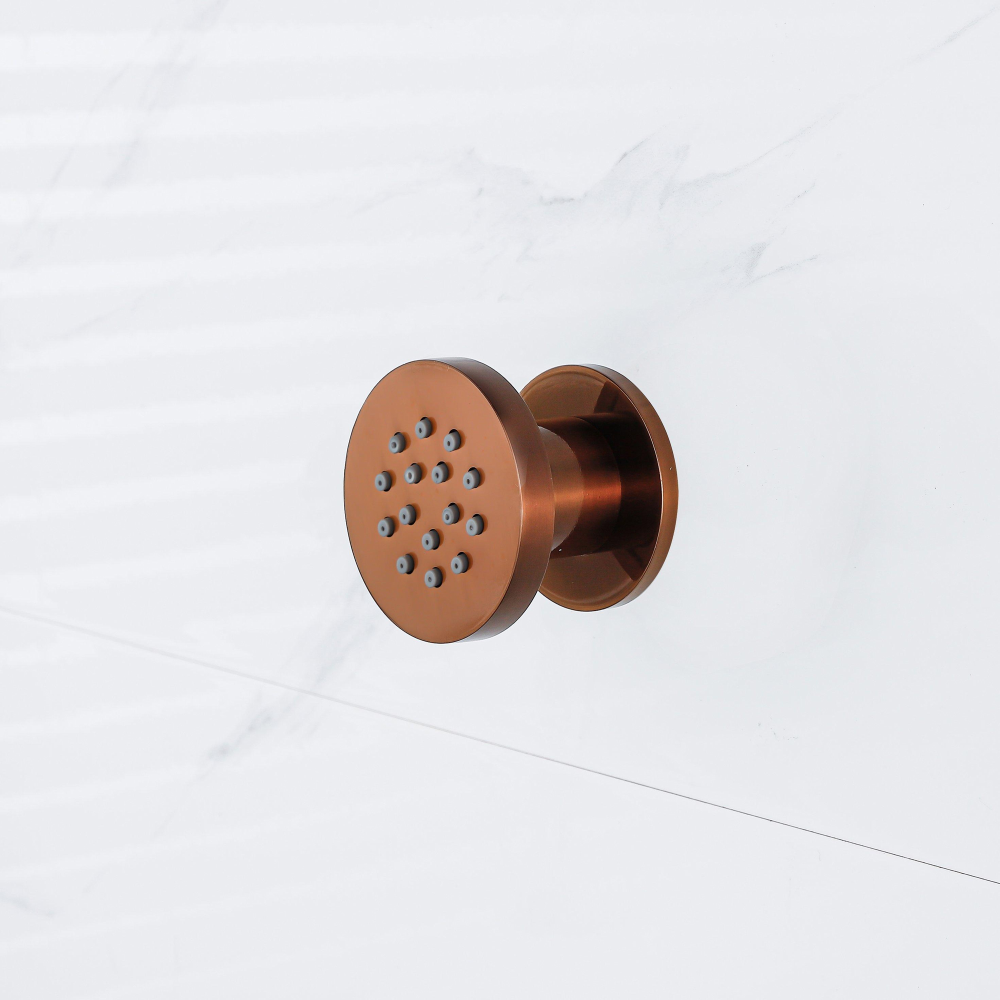Cette douche latérale compacte est idéale si vous souhaitez transformer votre douche en une véritable expérience bien-être, sans rénover entièrement votre salle de bains. Grâce à son format discret, elle s’intègre parfaitement aussi bien dans les petites salles de bains urbaines que dans les grandes douches à l’italienne, et elle s’accorde à merveille avec un style moderne, industriel ou d’hôtel de luxe. La teinte cuivrée chaleureuse donne immédiatement du caractère à la pièce, tandis que le jet d’eau ciblé offre un confort supplémentaire pendant la douche. Combinez-la avec une douche de tête ou une douchette à main pour constituer un ensemble de douche complet, ou utilisez plusieurs douches latérales pour une expérience bodyspa intensive. Si vous recherchez une finition élégante, durable et tournée vers l’avenir, l’aspect brossé PVD est en outre un choix parfaitement adapté.