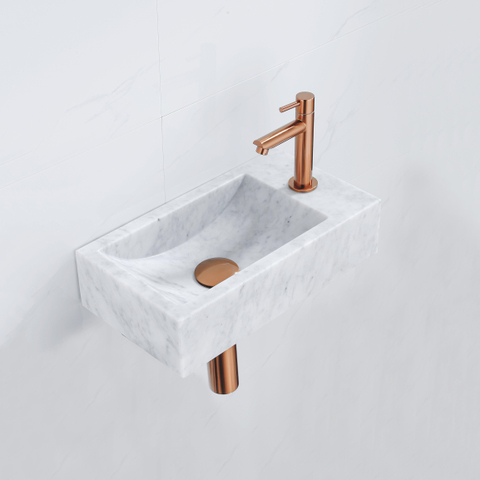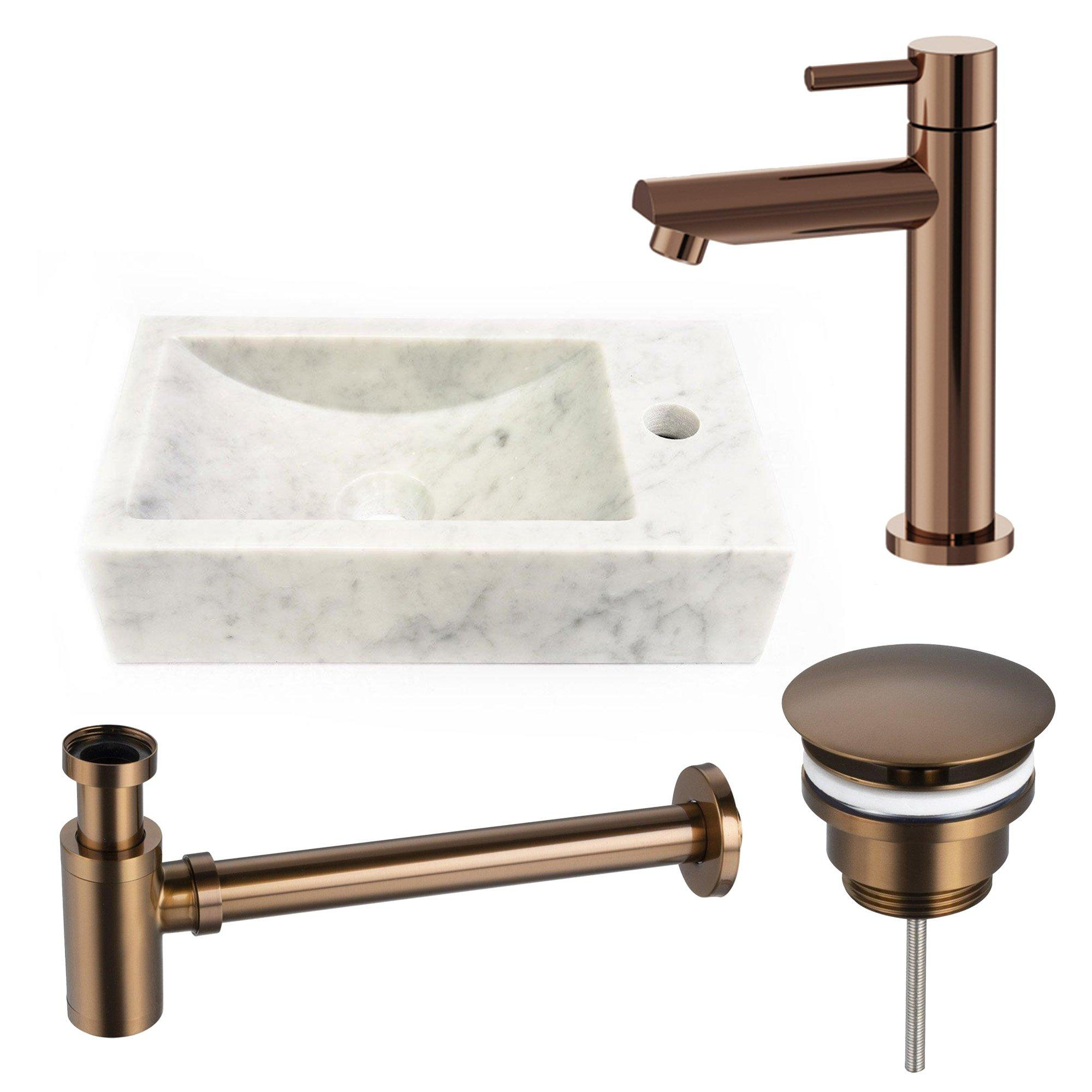 Saniclass Fuente ensemble lave-mains - 40x22 - 1 trou de robinet - droite - marbre - robinet de lave-mains cuivre - blanc