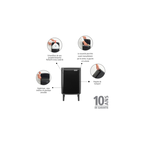 Brabantia Bo Hi Poubelle - 7 litres - seau intérieur en plastique - noir mat