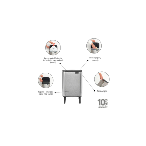 Brabantia Bo Hi Poubelle - 7 litres - seau intérieur en plastique - acier mat anti-traces de doigts