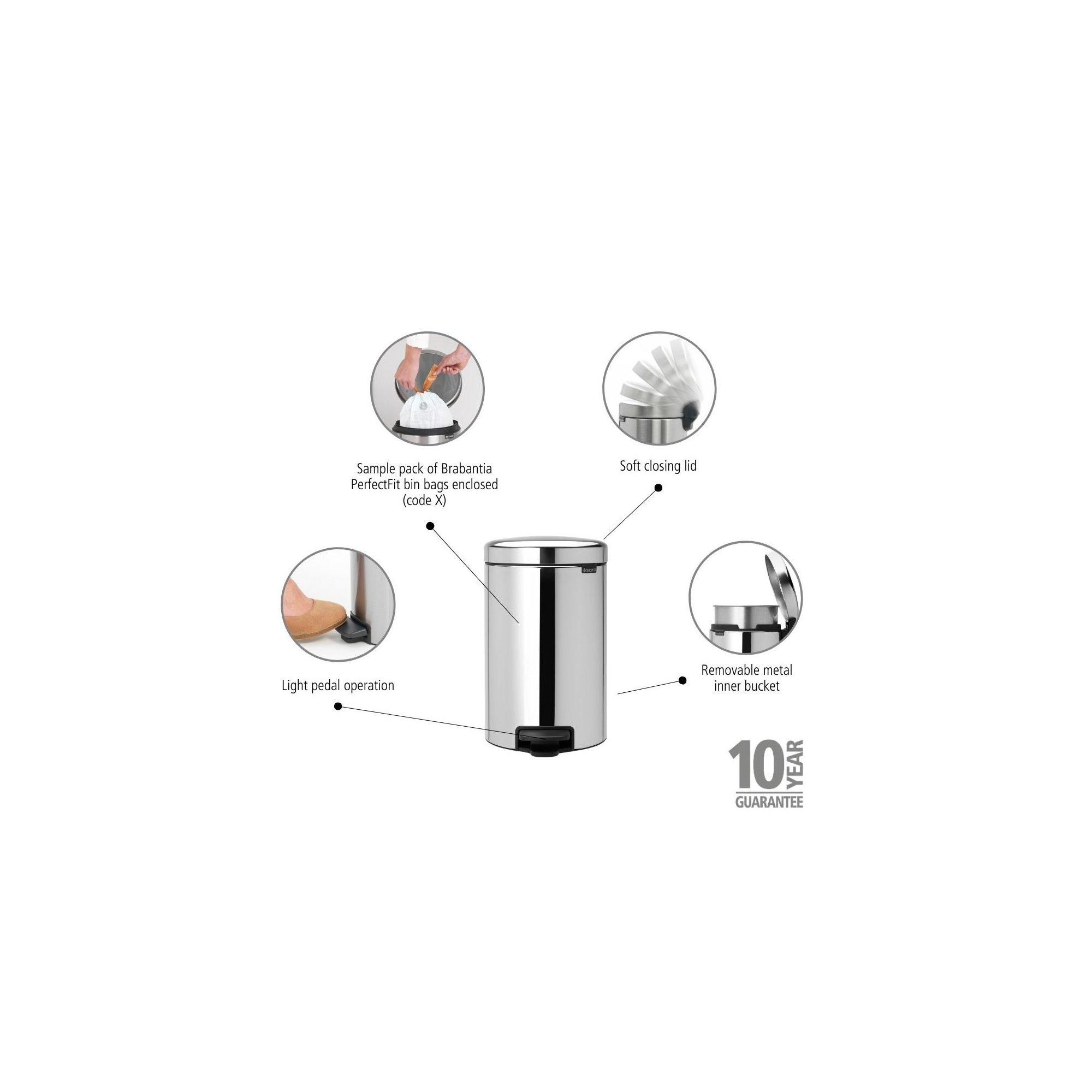 Brabantia NewIcon Poubelle à pédale - 12 litres - seau intérieur métallique - acier brillant