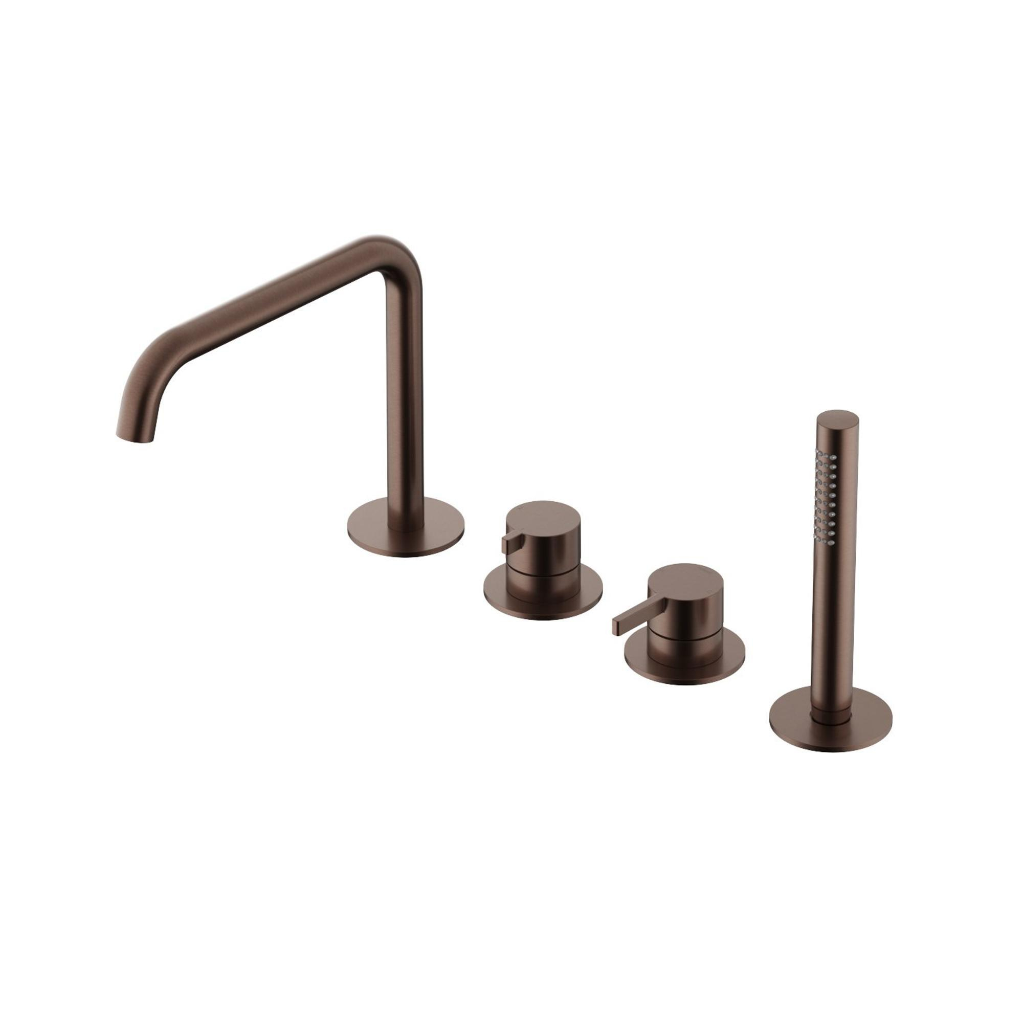 Hotbath Ace Mitigeur de baignoire - Combinaison bord de baignoire - monocommande - inverseur 2 voies - douchette à main - bec - Cuivre brossé PVD