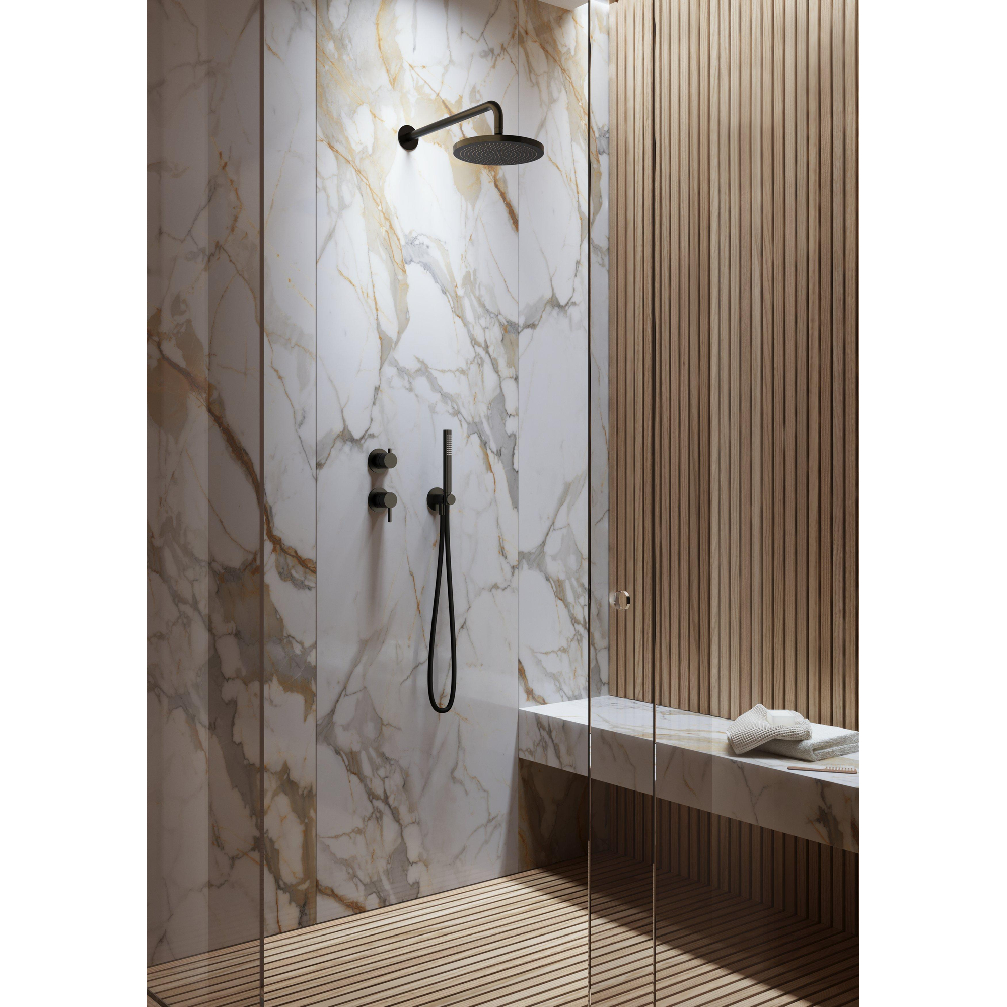 Avec cet ensemble de douchette, vous offrez à votre salle de bains une mise à niveau raffinée à la fois pratique et élégante. La combinaison d'une douchette barre élancée, d'un support mural pratique avec sortie intégrée et d'un flexible de douche généreux de 150 cm assure une expérience de douche confortable et flexible. La finition noire polie PVD apporte une apparence luxueuse et moderne qui s'intègre facilement dans différents styles de salle de bains. Grâce aux matériaux de haute qualité, vous profitez non seulement d'un design magnifique, mais aussi d'une durabilité et d'une fiabilité qui durent des années. Vous transformez ainsi votre routine quotidienne en un moment de détente et d'élégance.